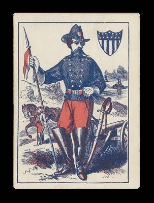 52 chromolithograph playing cards, with three jokers and four pages of description on paper, housed in original case.