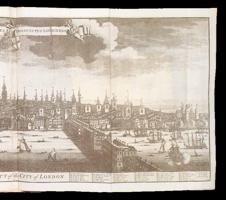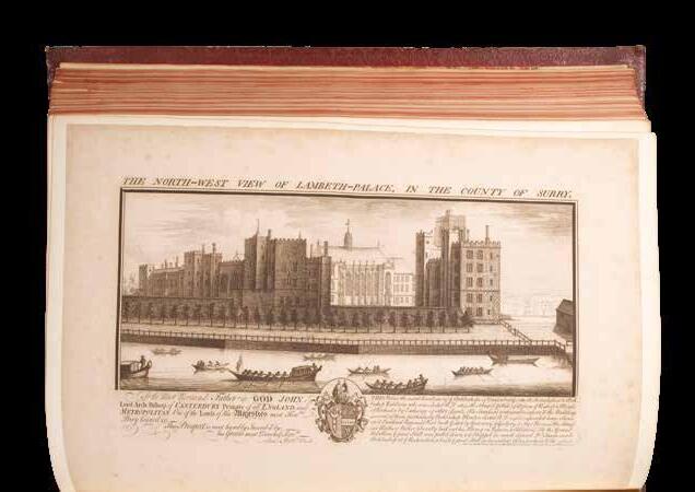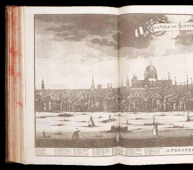 Volume IV: ‘... Description exacte des Villes, Palais du Roy, Ports de Mer &c...’, John Smith, 1724. A folding engraved view of Westminster, and 15 further folding, 30 double-page, and 28 full-page plates, bound without plates XLV and XLVII ‘Vue de la Ville de Londres’, plates XIII and XIV of Greenwich have been replaced by a double-page view, and there are extra full-page plates of XXIII Gawthorpe, and LXXIII Thirlestane.
