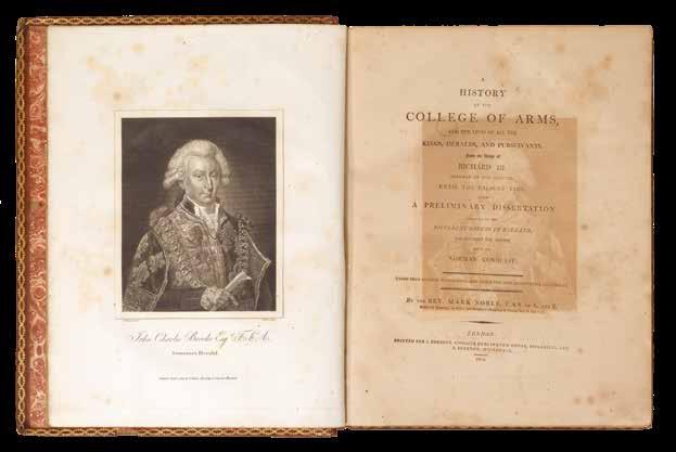 Folio (438 by 345mm). Engraved armorial frontispiece with the arms of John Normansill added in pen, ink and colour wash, engraved title-page, Royal Arms of Charles II, City of London, 25 plates of Arms of the Liveried Companies, one supplied from another example ?at the time of publication, and of the Artillery Company, five leaves of letterpress, extra-illustrated throughout with nineteenth century ephemera related to the London Guilds; nineteenth century half red morocco, marbled paper boards, gilt.