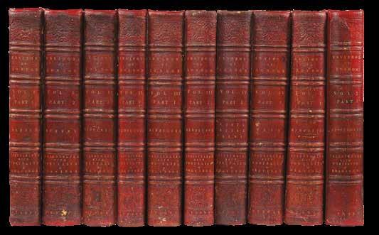 Six volumes in three. Folio, title-pages to volumes one-V printed in red and black, title-page to volume I with engraved vignette of the Royal arms, 394 engraved maps, plans and views, mounted on guards throughout; contemporary mottled calf, spines gilt decorated in nine compartments, green and citron lettering-pieces in two (540 by 330mm).