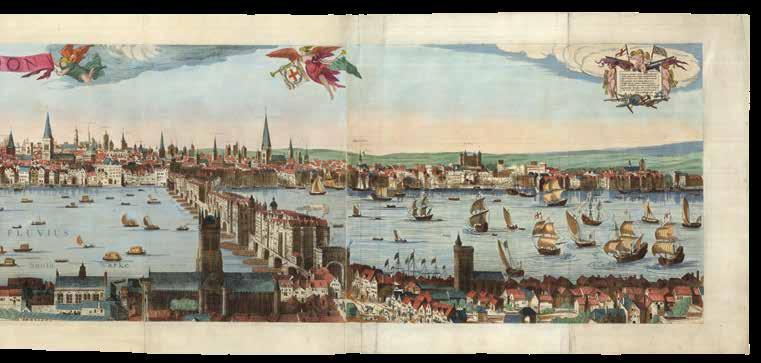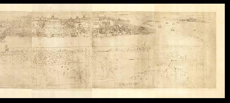 The “Wyngaerde Panorama” (1543/1544) is the earliest general view of London. Three metres in length, it is the work of Flemish artist Anton van den Wyngaerde, and was quite possibly commissioned by King Henry VIII. Wyngaerde’s original drawings, together with instructions as to how they should be coloured, are held in the Sutherland Collection, first housed in the Bodleian Library, now the Ashmolean Museum.