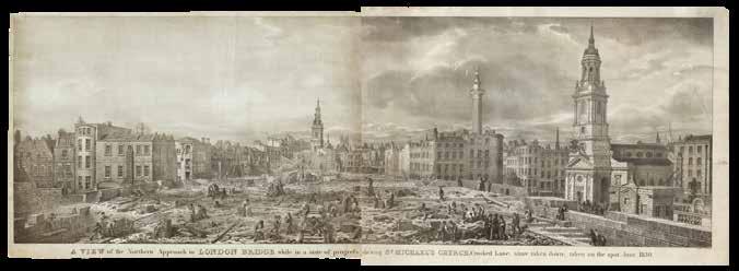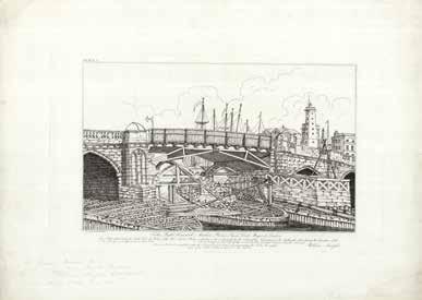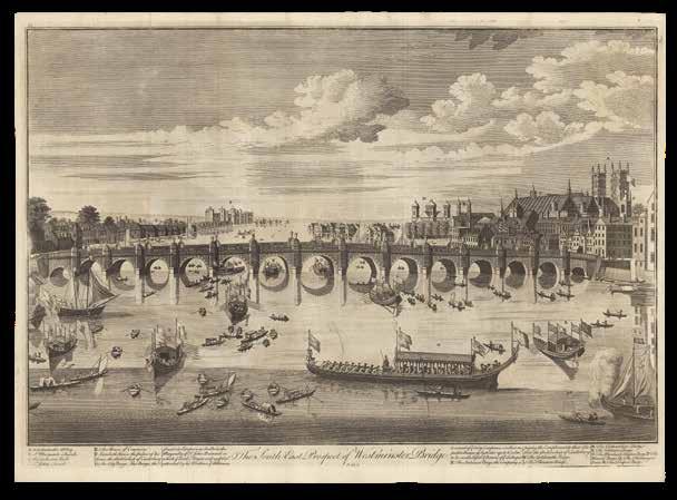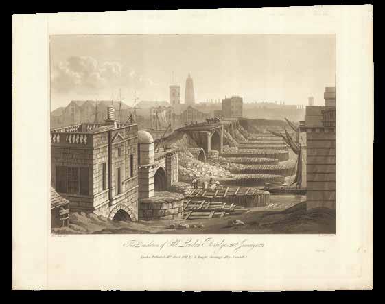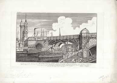 It was not only the lofty prospect of London, however, that printmakers felt worth committing to paper. The opening of a new building or bridge,