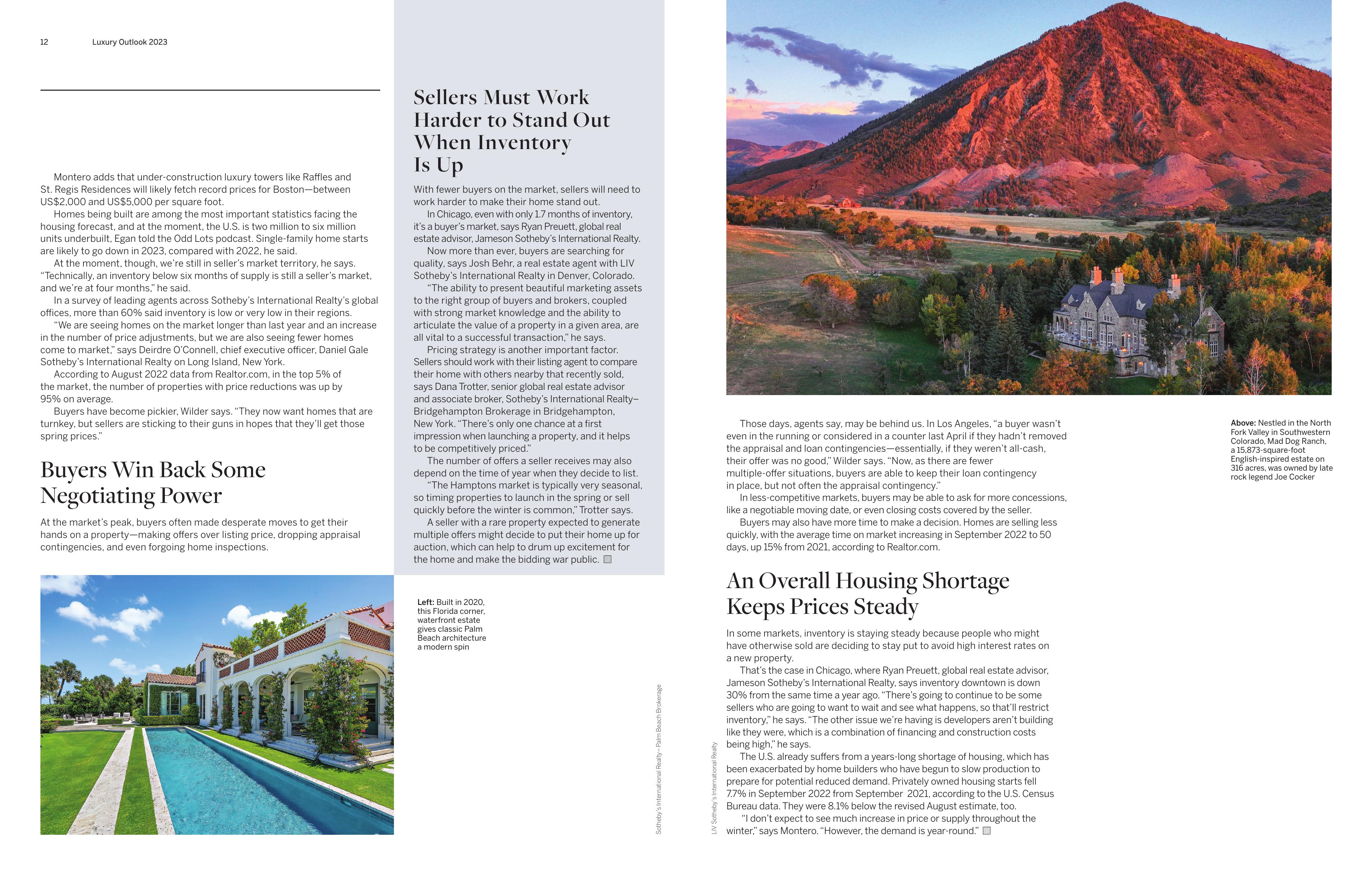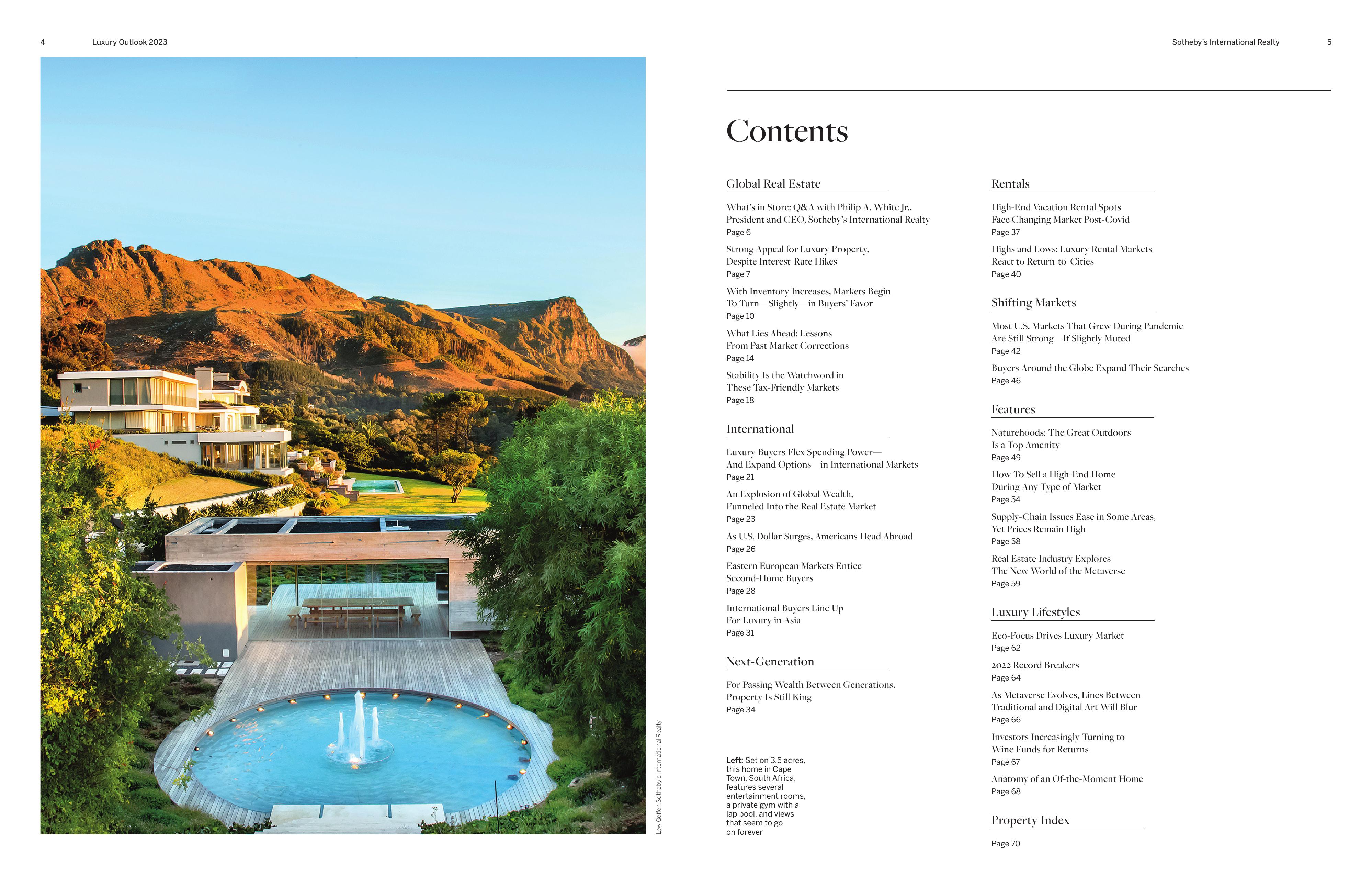 Stay ahead of the curve in the real estate market this year with the 2023 Luxury Outlook This comprehensive report puts you in the know,helping you make informed decisions with insights and predictions for a successful year