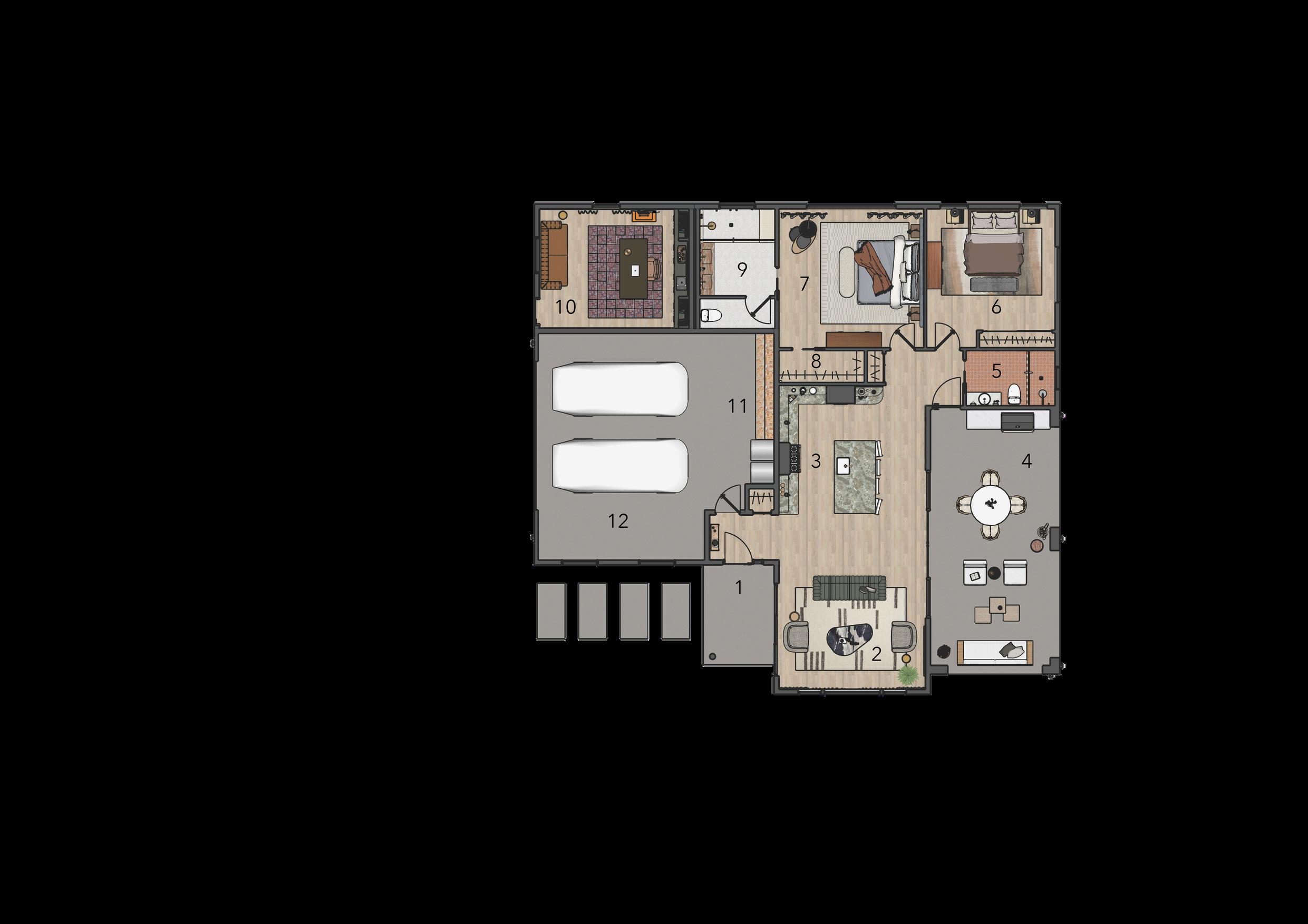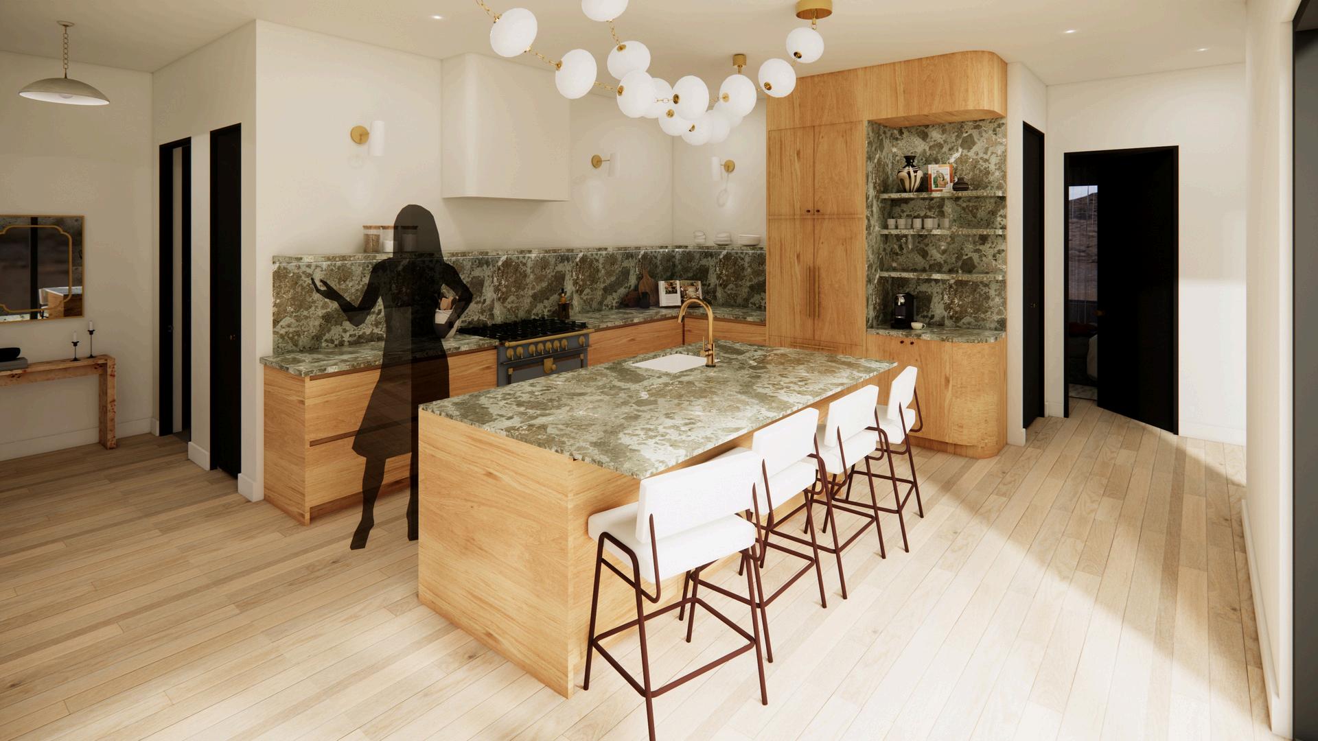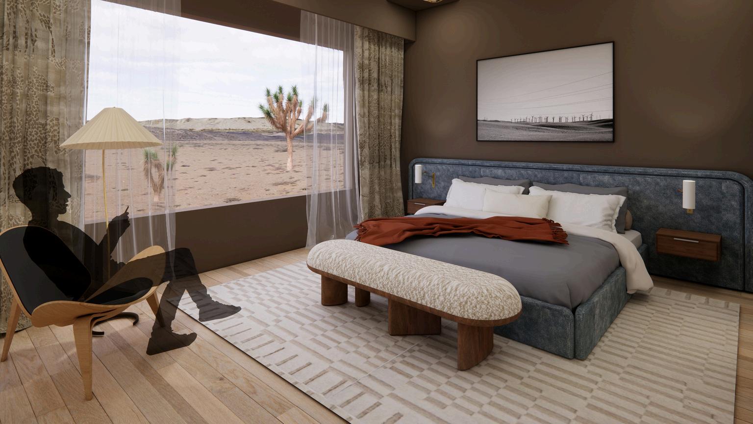 To achieve the look of these renderings, it was vital for me use IES light profiles and an HDRI image for a realistic desert background. Balancing the use of smart materials from the Enscape Material Library as well as inputting our selected materials all worked togetherto help drive thevision of the space.