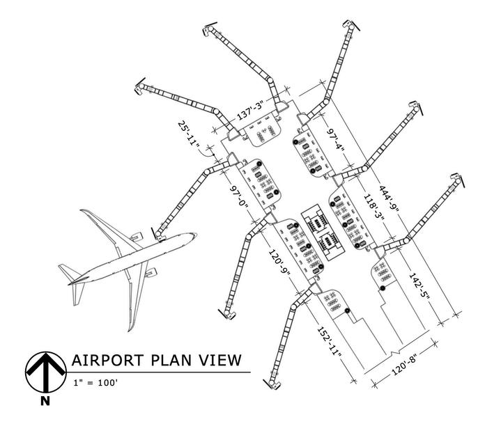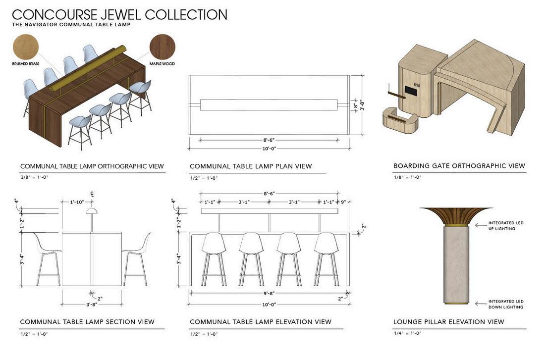 This design was submitted as part of the Robert Bruce Thompson Annual Student Light Fixture Design Competition. The project challenged designers to design a luminaire forthe boarding gate lounge that is welcoming, comfortable and unforgettable. My goal was to capture the essence of the golden age of aviation by creating a gate lounge that feels warm, cinematic, and inspiring. I designed an airport pier terminal with a variety of comfortable seating that features integrated lighting and a geometric gate counter and gate threshold to invite passengers in to build excitement for their flight experience.