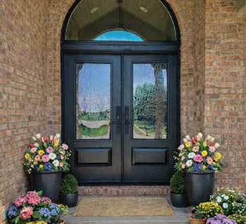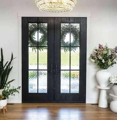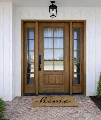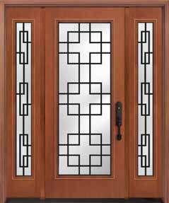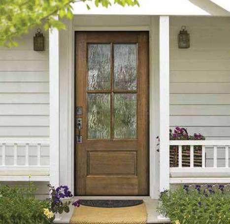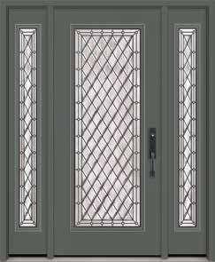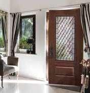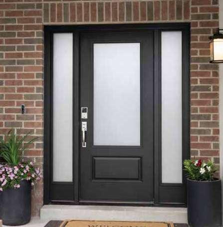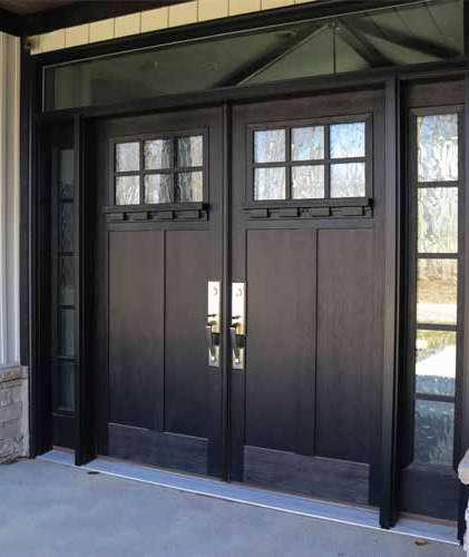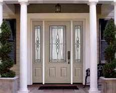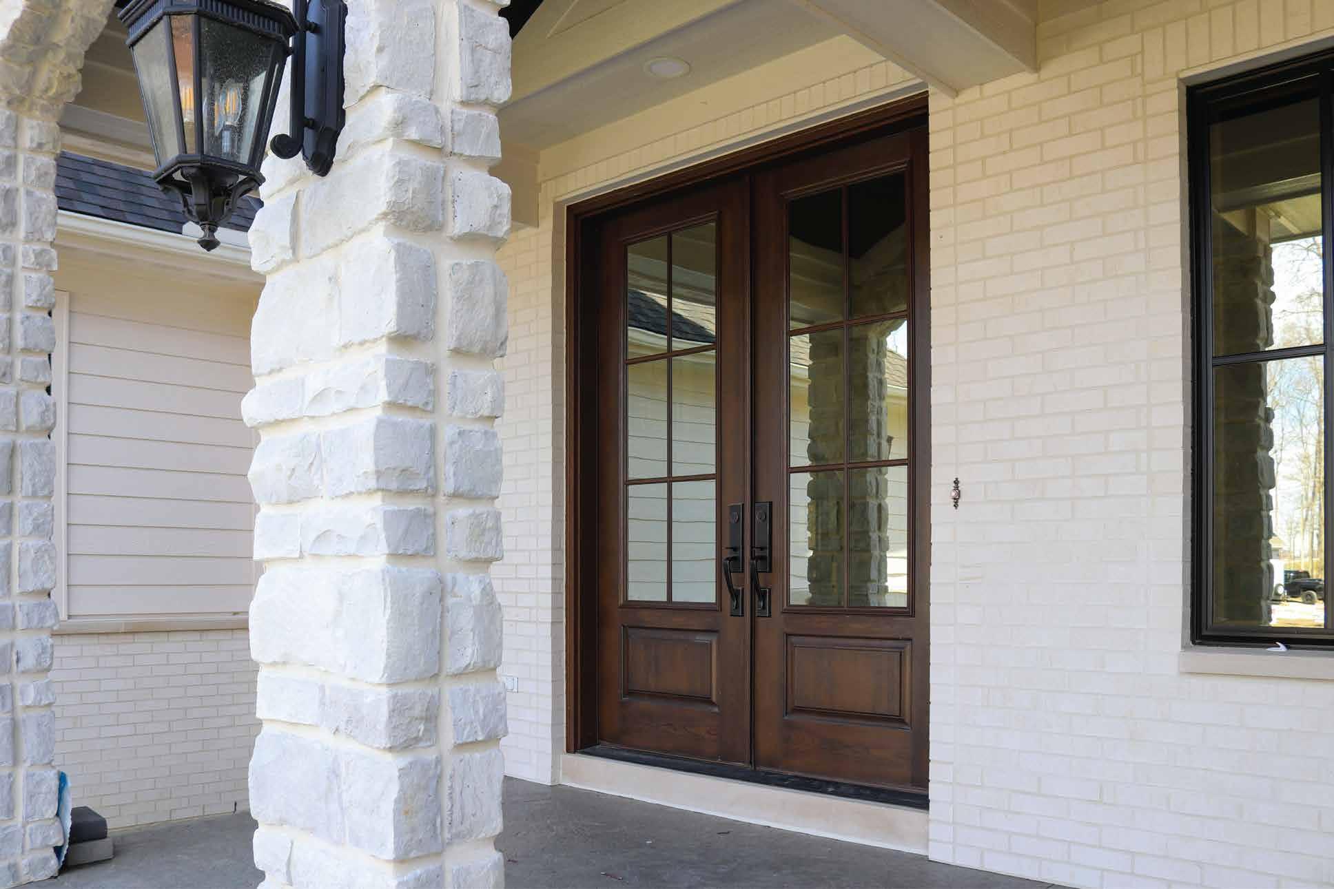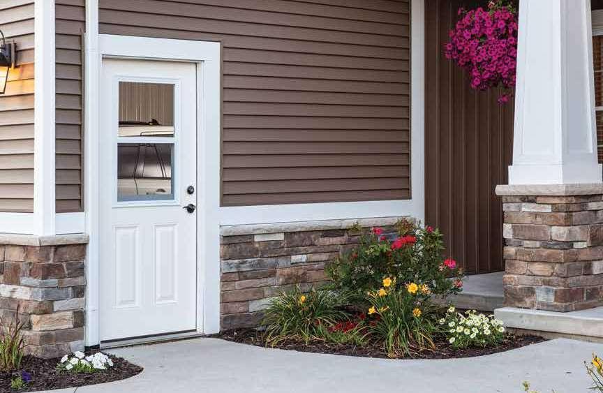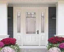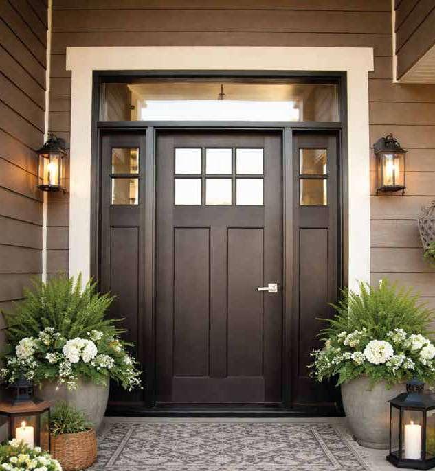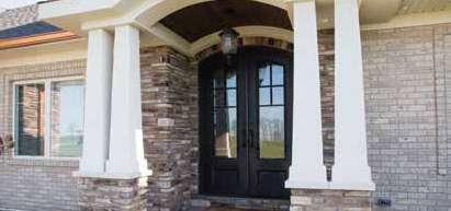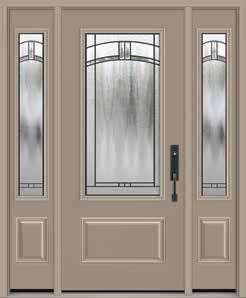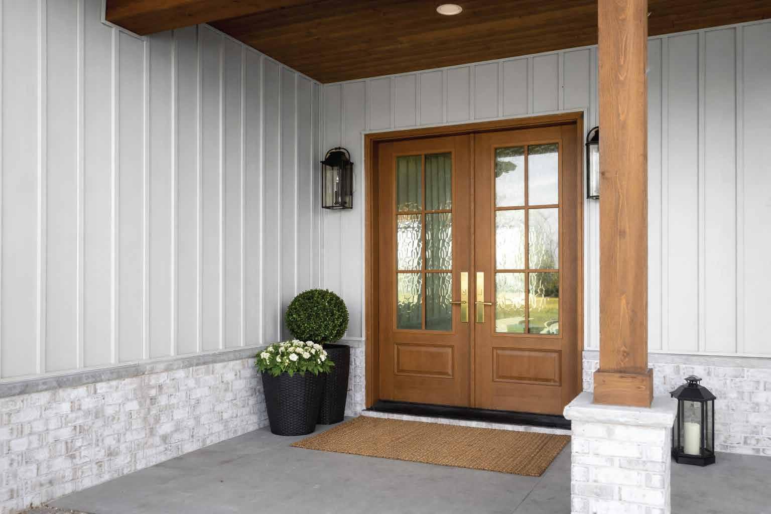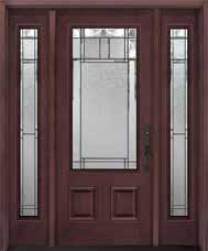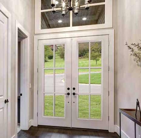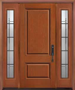 The document is a product catalog and marketing brochure from Moeller Door & Window focused on exterior entry doors. It highlights product features, customization options, materials, glass styles, and technical specifications for residential applications.