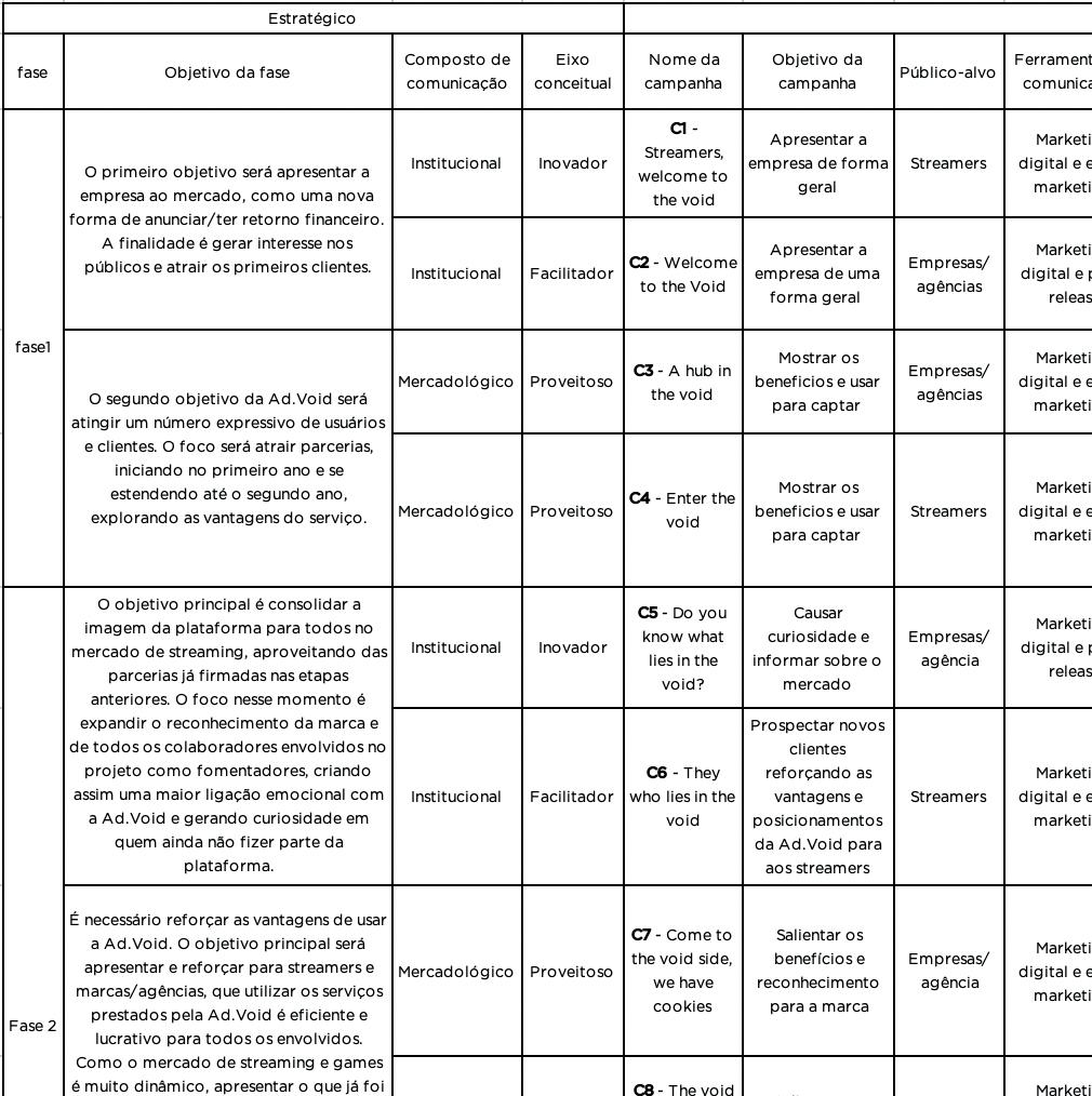 Tabela 20– Estratégia de marketing