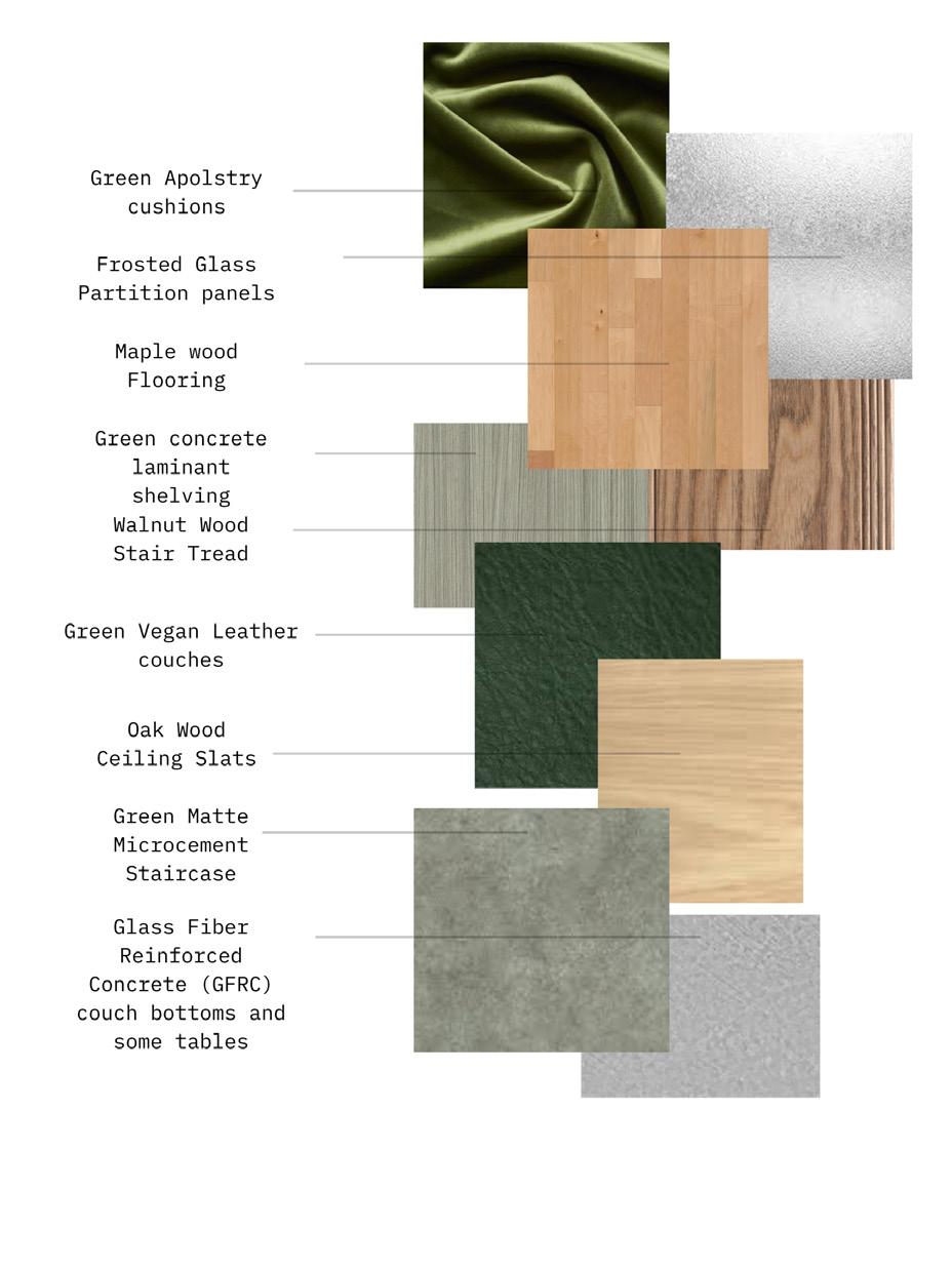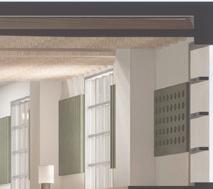 Rotating shade panels replace typical doors, offering an array of privacy and exposure between the public meeting space and the woodshop. With the help of these moveable barriers, users can instantly modify their surroundings by opening areas when teamwork is required or closing them to facilitate quiet, concentrated work. The industrial structure is softened by green accents and natural materials, which offer grounding cues and visual clarity that improve comfort and attentiveness.