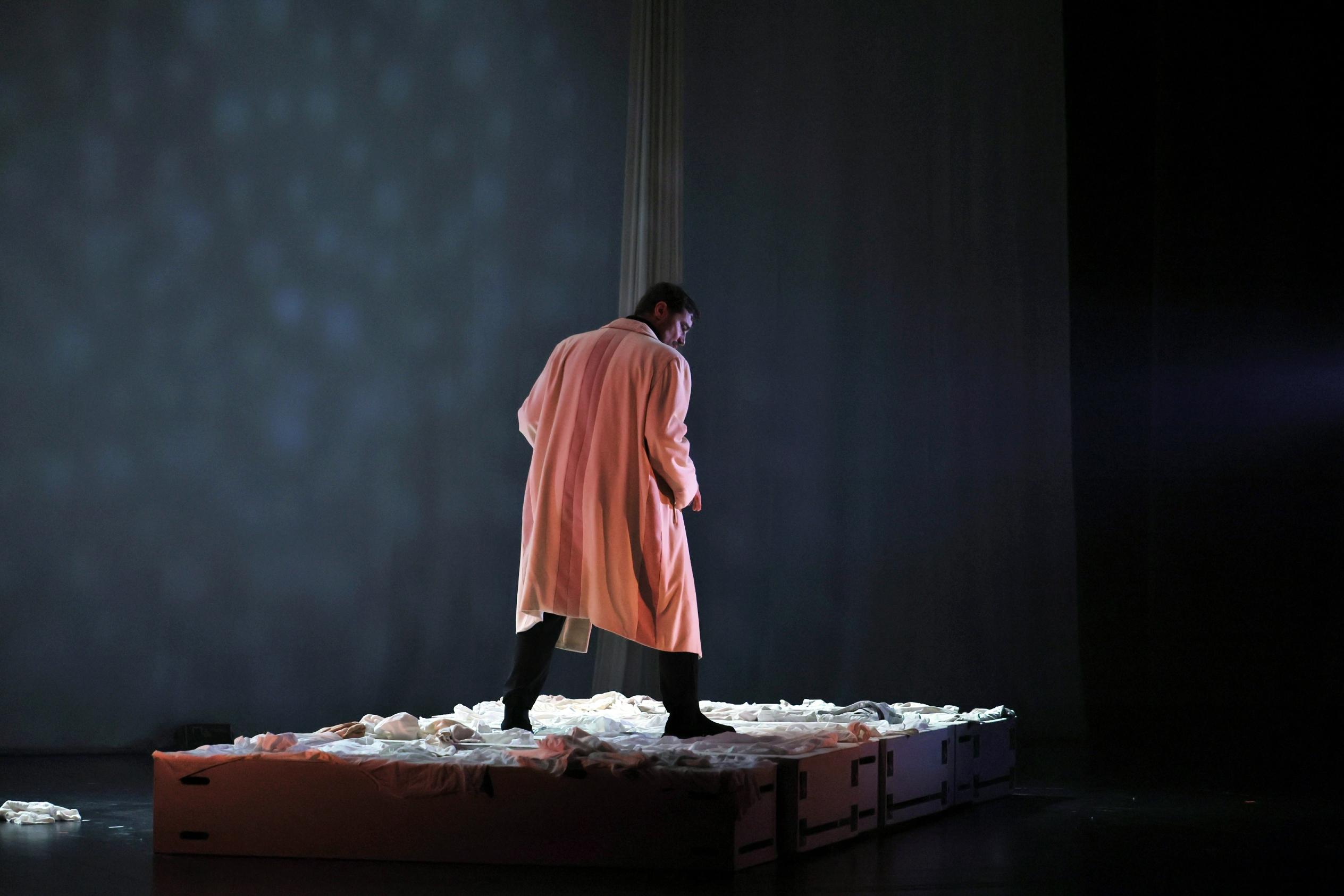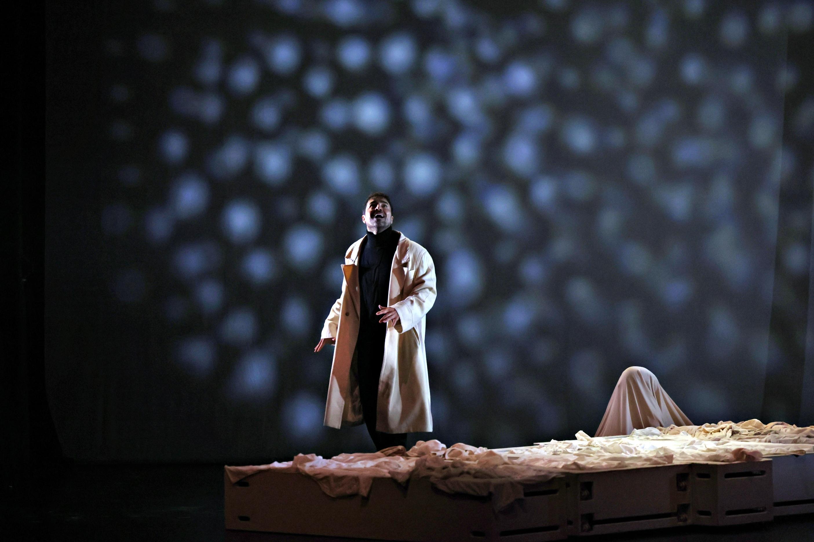 Luminosa» de Jon Fosse, com Ricardo Pereira e Sandra Barata Belo. Na peça, um homem conduz sem destino, ao acaso, vira à direita, vira à esquerda até que o carro fica atolado numa estrada florestal. Sai do carro e perde-se no interior da floresta, debaixo do céu escuro e de neve. Quase morre de frio e de cansaço.
