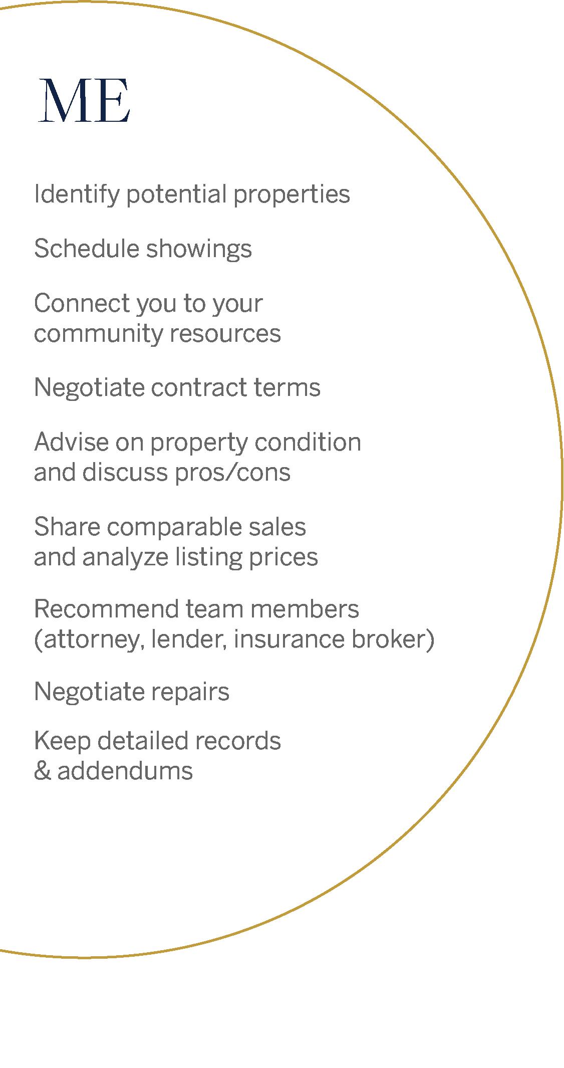 Provides you with the support, market knowledge and negotiation skills to ensure we reach your home buying goals.