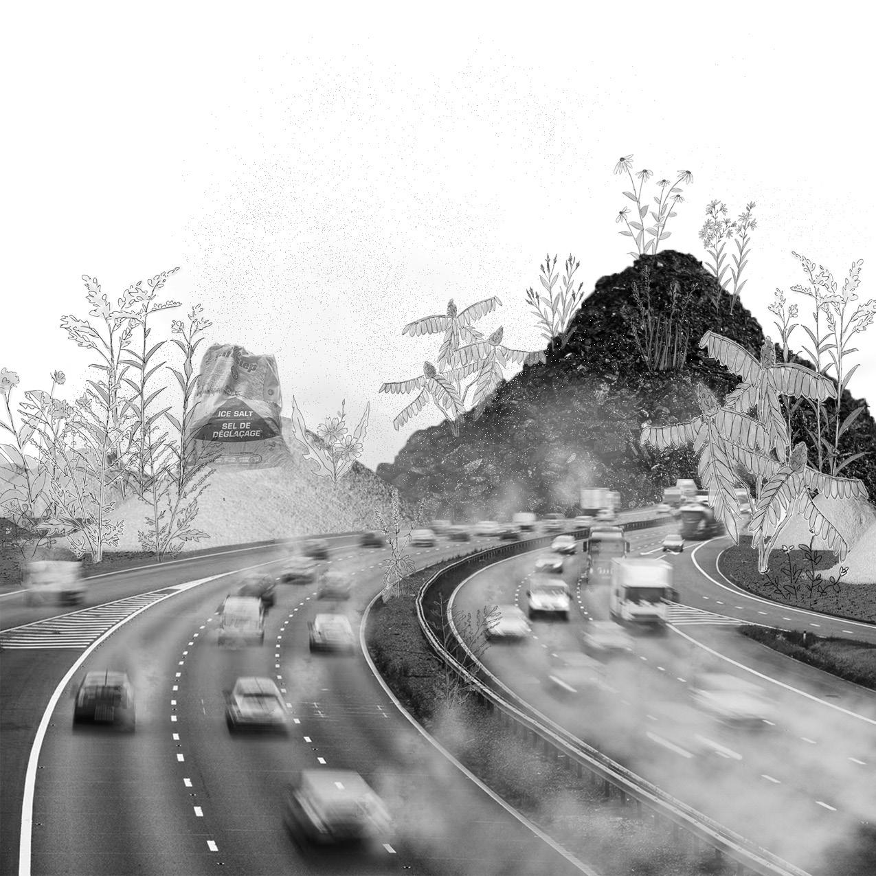Most people living in the Greater Toronto Area are familiar with the highway network, massive infrastructural projects that shape our urban environment and day-to-day lives. They are also major sources of pollution, posing health risks, contributing to greenhouse gas emissions, and contaminating waterways. These impacts are often accepted as necessary trade-offs to meet transportation demands. This project aims to challenge the status quo, questioning whether highways can offer more to cities, people, and the environment. By reimagining the leftover roadside verges and their unique ecologies, this thesis explores how highway landscapes can transform from polluted corridors into regenerative systems.