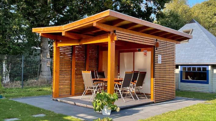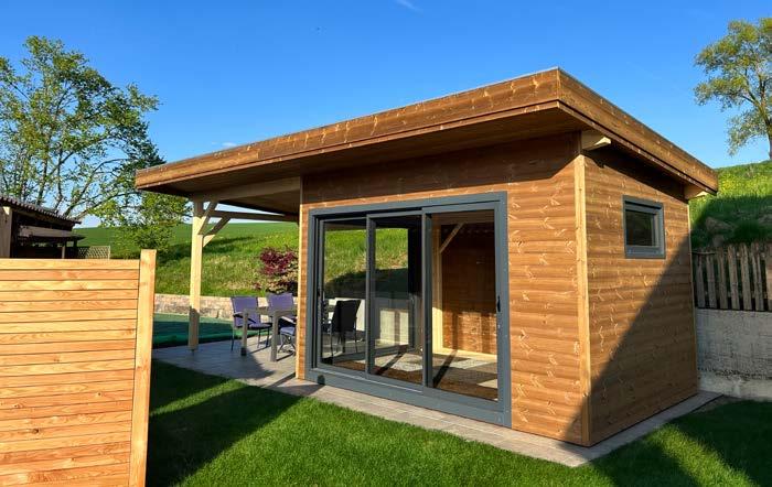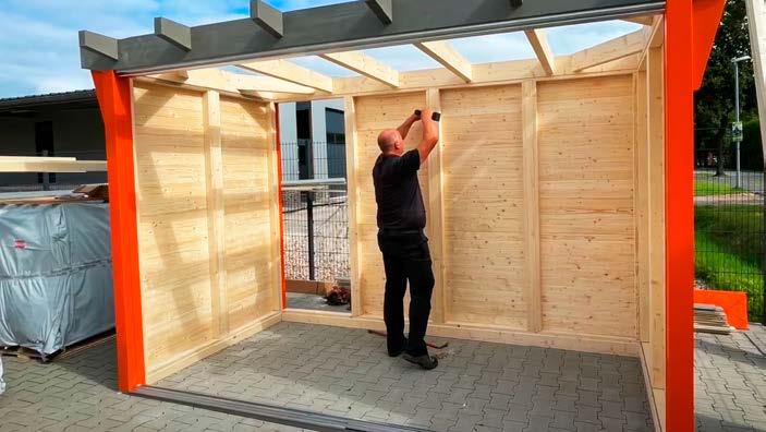 • Bei Modulhäusern, Pavillons und Cara easy Bauweise sind die Wände auf einer Rahmenkonstruktion vorgefertigt. D. h. Sie bauen die Elemente einfach zusammen und erzielen dadurch einen schnellen Aufbau.