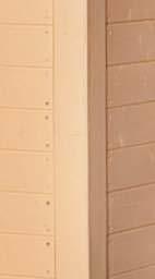 • Bei 19 - 33 mm Wandstärke besteht die Fußbodenschalung aus 19 mm (Deckbreite 88 mm) Nut- und Federbrettern inkl. Sockelleisten (nicht bei Modulbau u. Cara easy).