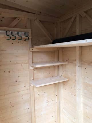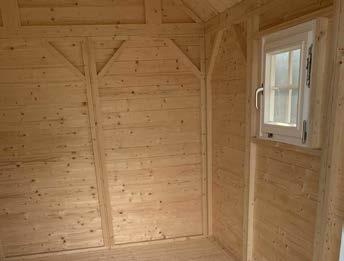 • Ab einer Wandstärke von 45 mm ist die Fußbodenschalung aus 21 mm Hobeldielen (Deckbreite 110 mm) (optional auch in 28 mm (Deckbreite 110 mm) Materialstärke möglich) inkl. Sockelleisten