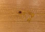 Bei deckender weißer Farbe ist es immer wieder möglich, dass sich gelb-/bräunliche Verfärbungen (Säure des Astes) abzeichnen. Dies ist trotz Verwendung hochwertiger Imprägnierung (Sperrgrund) und Farben nicht zu verhindern.