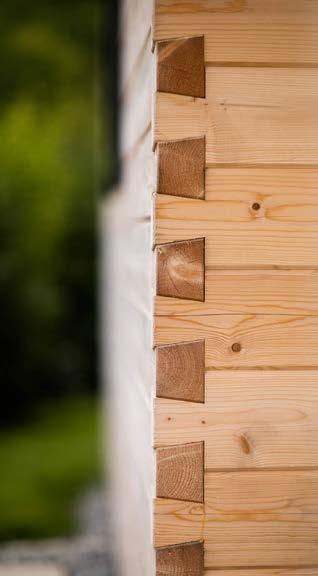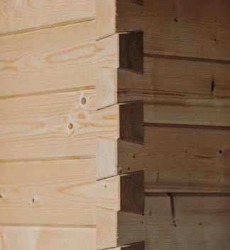 • Im Blockbohlenbau hohe Stabilität und Winddichtheit durch Chaletfräsung bei allen Eckverbindungen
