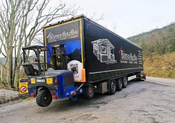Sie werden unser Fahrzeug leicht erkennen! Jeder Sattelauflieger hat ein anderes Haus aus unserem Angebot an seiner Tür. Sie können den Lieferprozess laufend überwachen. Wir bieten die Möglichkeit, den Standort unserer LKWs mit GPS zu verfolgen. So können Sie sich beruhigt auf Ihr Holzhaus freuen.