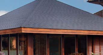Dicke zweilagige, großformatige Schindeln mit einem attraktiven Aussehen und der optischen Struktur einer Holzschindel. Diese Schindeln bieten eine hohe Windlastfestigkeit und sind in mehreren Naturtönen und Farben erhältlich.