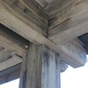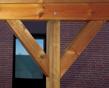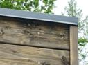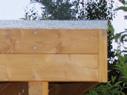 Pfosten mit Holm: Die Längsholme ruhen stabil in den Ausklinkungen der Pfosten. Das Dachgefälle wird durch aufgesetzte lange Keile hergestellt.