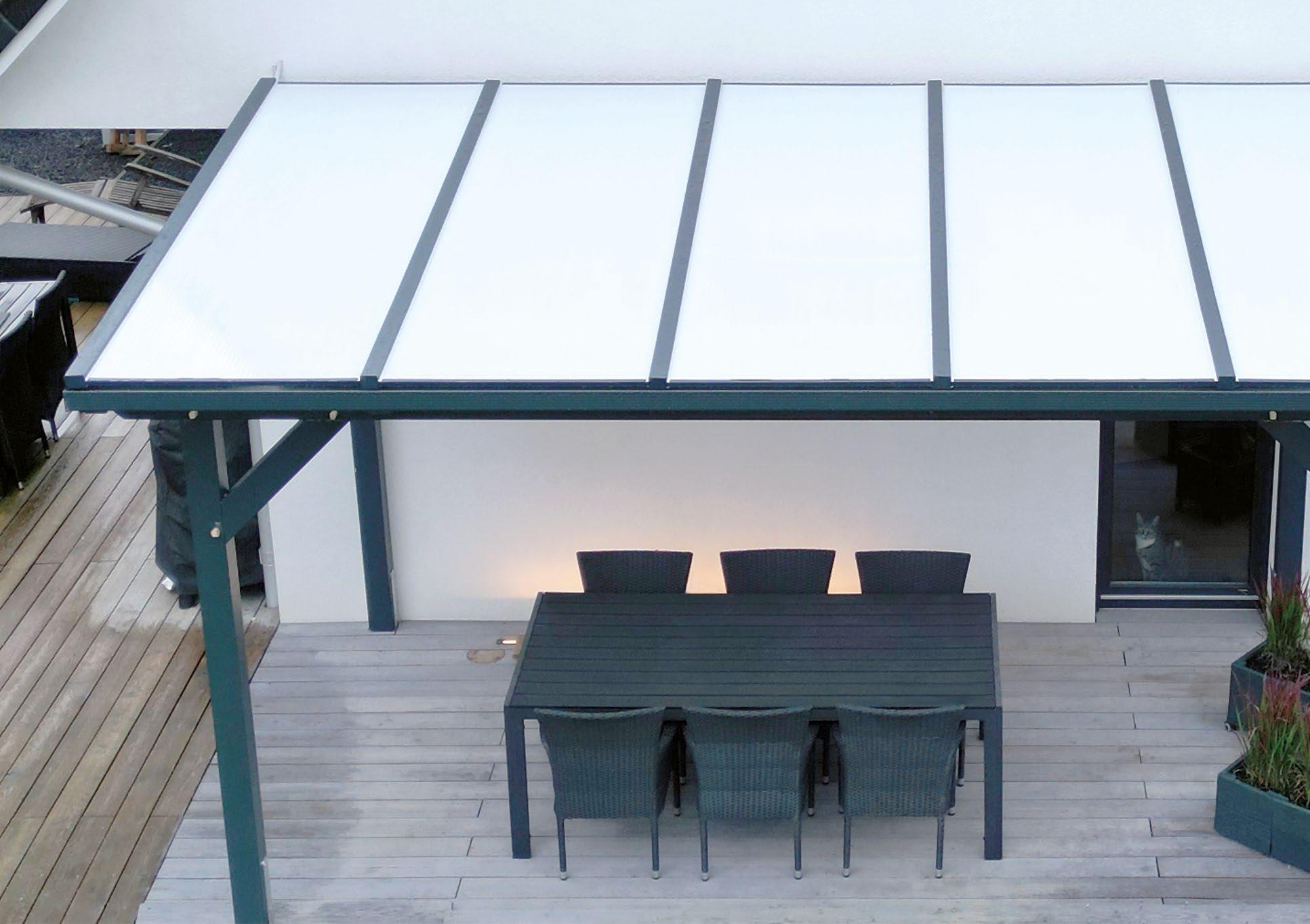 Bei einem Kompakt Carport ist es ein Zusatzartikel; bei einem Spitzdach Carport ohne Dacheindeckung liefern wir keine Dachrinne. Aufgrund unserer Konstruktion „System SCHEERER“ können wir auf die Mindestdachneigung gemäß Flachdachrichtlinie verzichten.