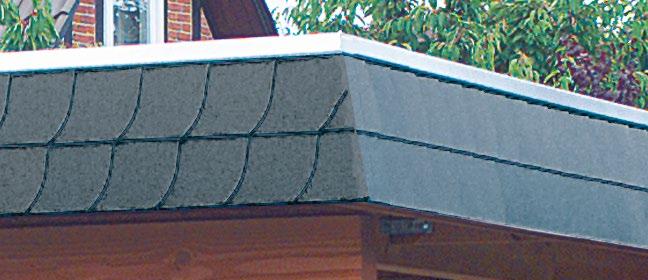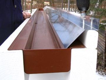 Dachrinne: Die Kunststoff-Kastenrinne, hier inkl. Alu-Rinnenblech ist zwischen zwei Auflagen montiert und damit von außen nicht sichtbar.