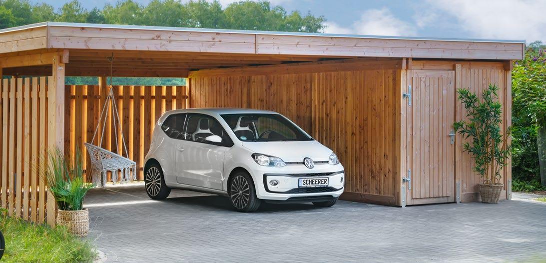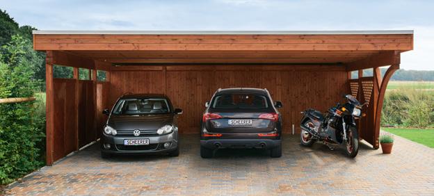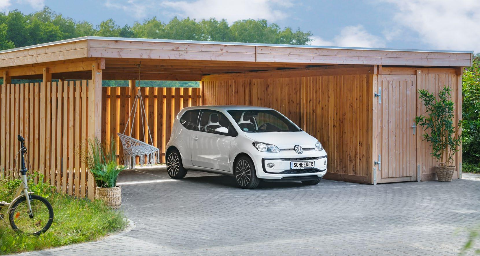 Bestechende Funktionalität – SCHEERER-Carports passen sich jedem Haus und Gelände an. Freistehend, als Wand- oder Eckanbau. Mit integriertem Geräte- oder Hobbyraum. Mit Türsystemen, die Sie auch bei geparktem Fahrzeug bequem eintreten oder in den Garten gelangen lassen.