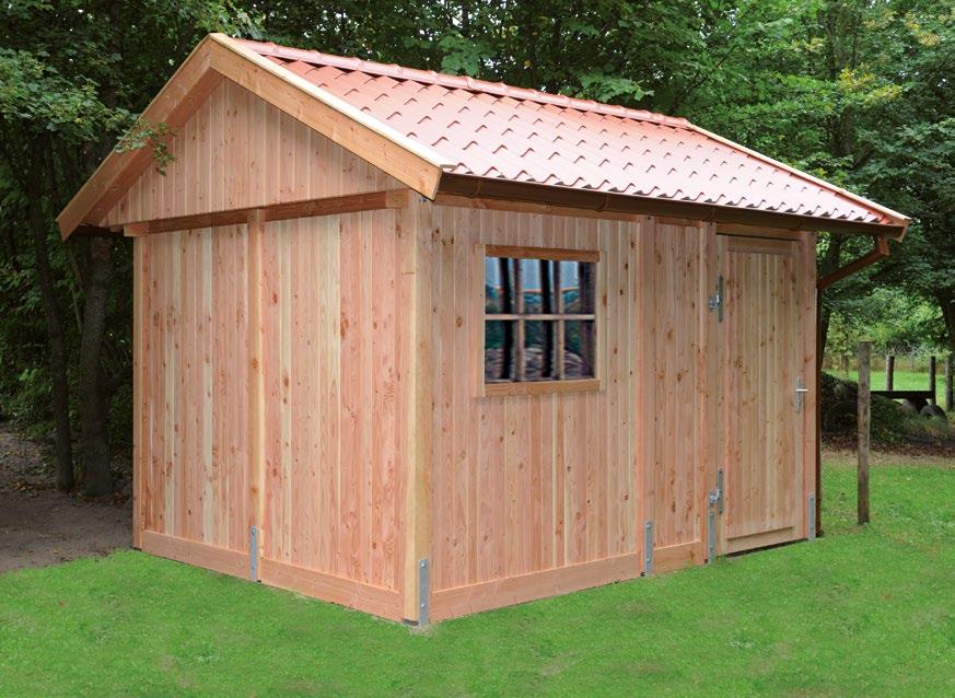 Gerätehaus Nordmark mit Spitzdach auch aus Douglasie – H-Anker extra bestellen