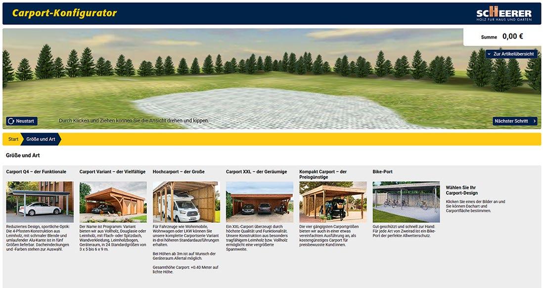 Als Spezialist für Holz-Carports macht SCHEERER vieles möglich. Sie können aus verschiedensten Varianten wählen. Wir bieten Standardgrößen für Carports und Hochcarports sowie individuelle Anpassungen und Sonderanfertigungen. Ob für Fahrrad, Motorrad, Pkw, Transporter, Lkw oder Wohnmobil - in unserem Katalog finden Sie sämtliche Ausführungen. Um Ihr Wunsch-Modell bequem von zu Hause zu planen, scannen Sie den QR-Code oder nutzen unseren CarportKonfigurator direkt auf scheerer.de. Am Ende erhalten Sie eine Materialliste inklusive Preisangaben – die ideale Basis für ein Beratungsgespräch mit Ihrem Fachhändler vor Ort.