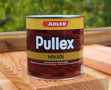 Zur Auffrischung und Renovierung empfehlen wir Farbpflegeprodukte von Adler aus Österreich, welche technisch und farblich auf unsere werkseitigen Beschichtungen abgestimmt sind. Bei Pullex® Holzöl handelt es sich um ein Öl für den Außenbereich mit sehr gutem Eindringvermögen in das Holz. Der Anstrich ist gegen Bläue und Schimmel geschützt. Ein zusätzlicher UV-Schutz verlangsamt die Vergrauung des Holzes. Frei von aromatischen Lösemitteln.