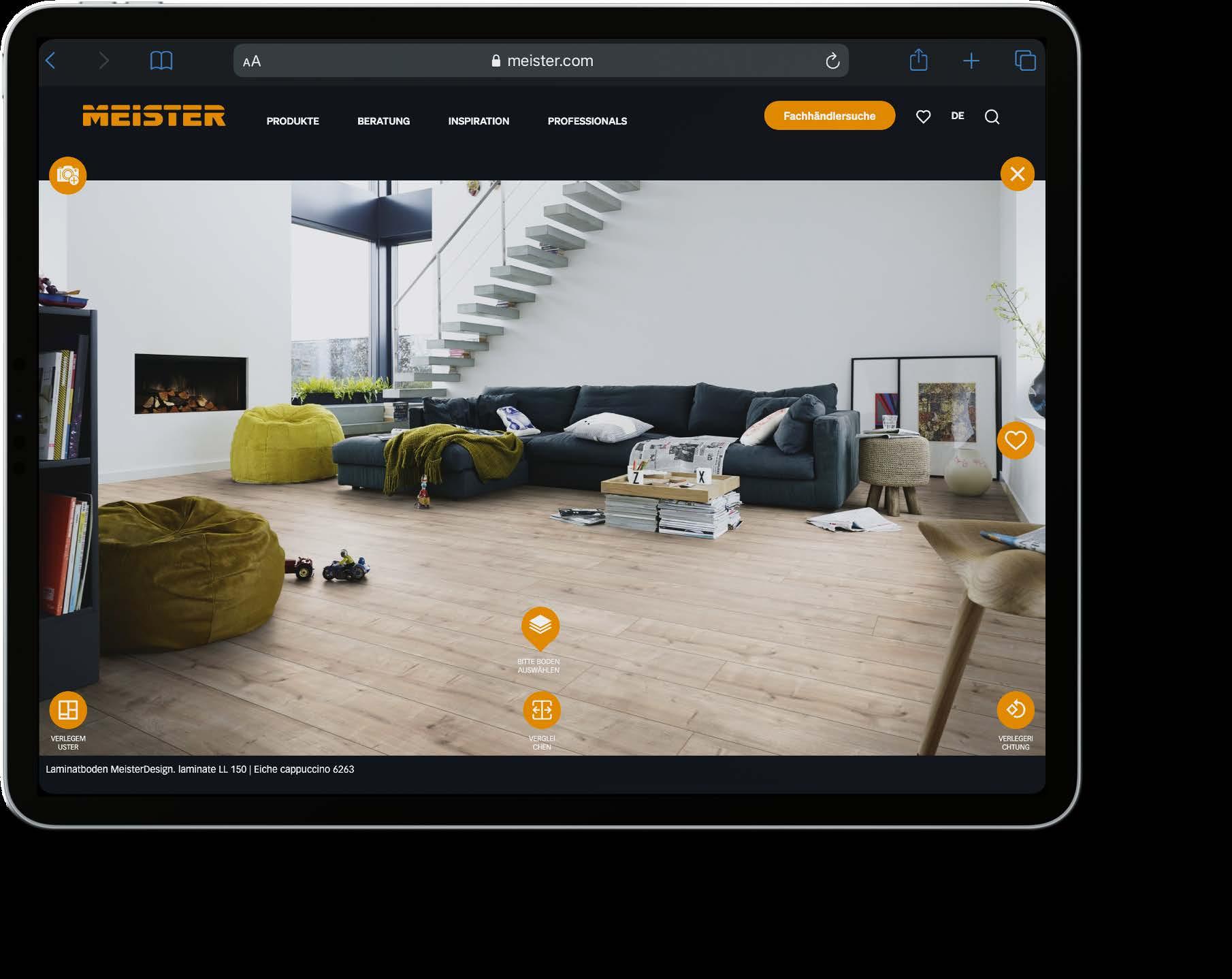 Diese Fragen lassen sich mit dem MEISTER-Interior Designer ganz einfach beantworten, denn mit diesem Tool können Sie sich MEISTER-Boden in Ihrem eigenen Raum ansehen!