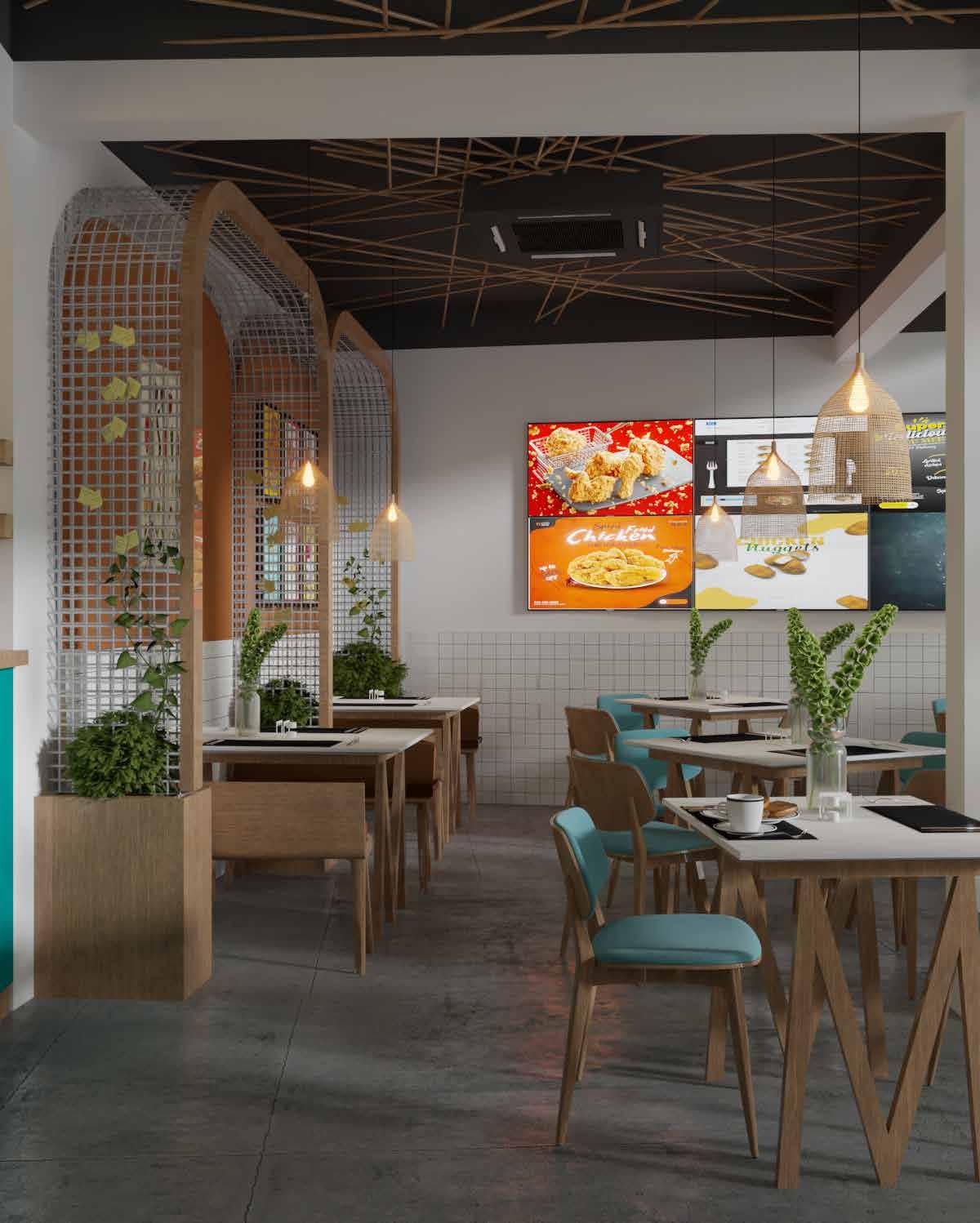 Nestled in the heart of the city, This café offers a serene escape with its elegant arched interiors and minimalist furniture. The material palette features rich wood accents, chic meshed wire elements, and soothing pastel-colored walls, creating a harmonious blend of warmth and modernity. Each corner of the café invites you to relax and savor the moment, making it a perfect spot for a peaceful coffee break or a casual meeting.