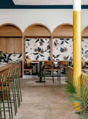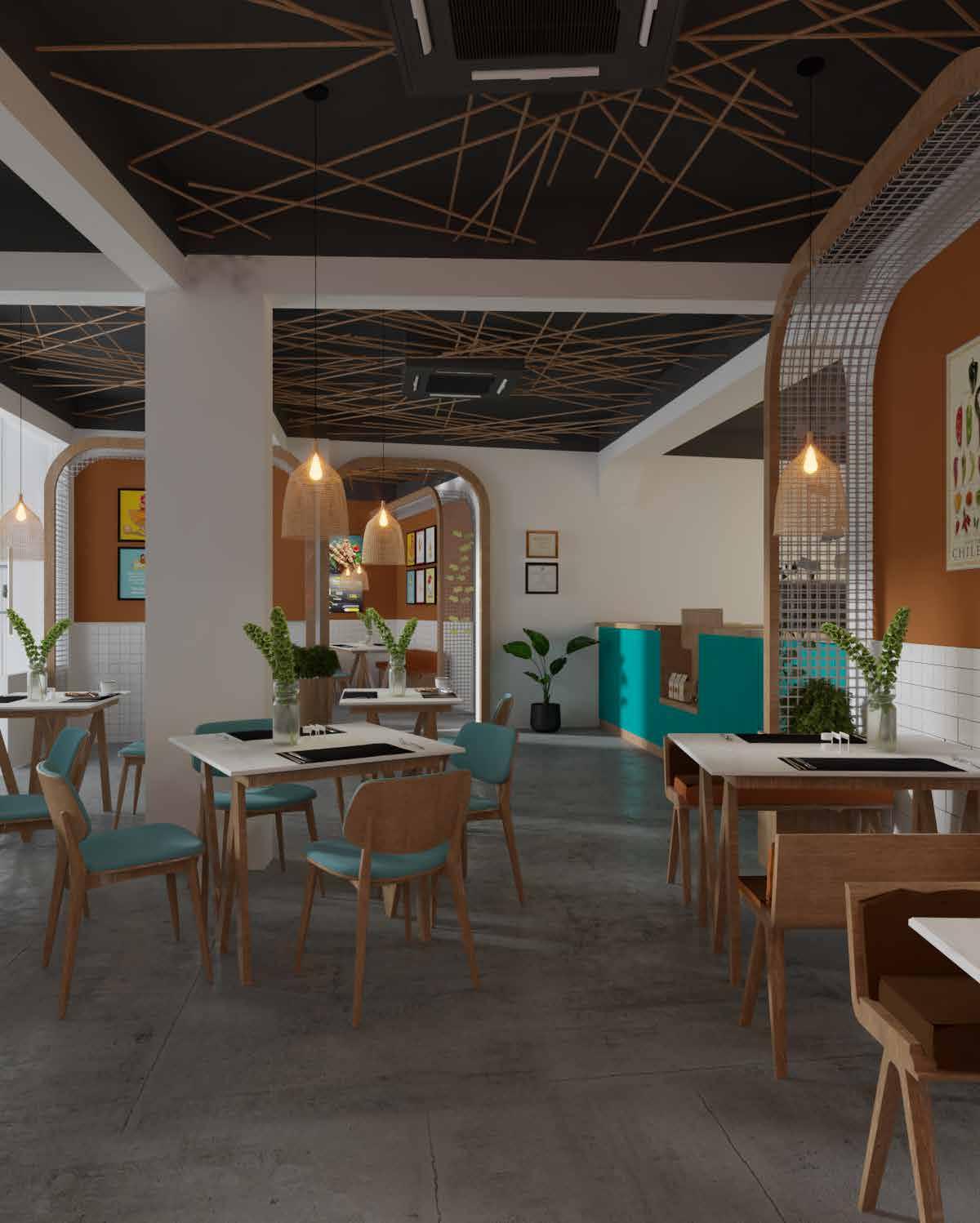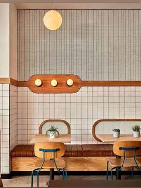 Biscut tiles as a backsplash gives the cafe an edge for proper material finishing