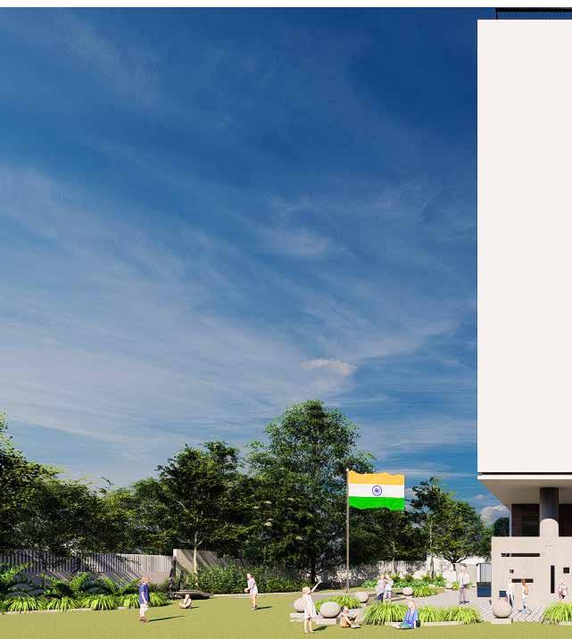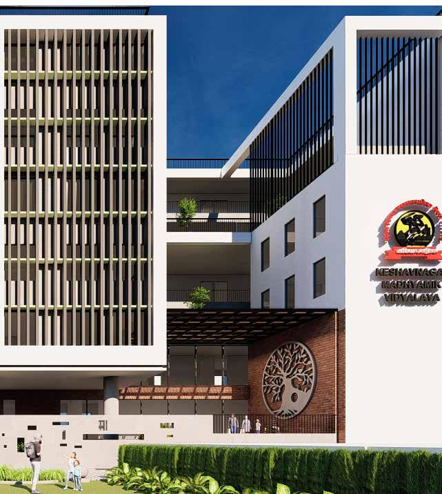 The blend of natural materials and greenery evokes a transformative journey for students, as they evolve and flourish in a setting that values both their educational and personal development.