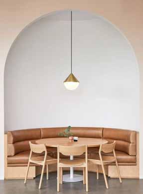 A bare shell arch having a single ceiling light , emphasises the focus toward the table and providing a better ambience