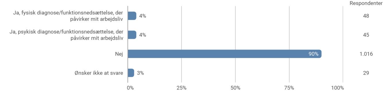 Har du en fysisk eller psykisk diagnose/funktionsnedsættelse, der påvirker dit arbejdsliv?