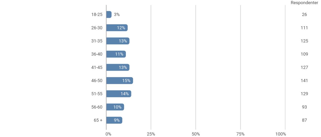 Der ses en spredning over aldersgrupperne, med undtagelse af den yngste aldersgruppe 18-25 år.