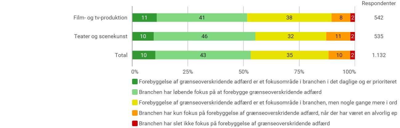 Hvad er din generelle oplevelse af film-, tv- og scenekunstbranchens fokus på grænseoverskridende adfærd i dag? Angiv det svar, der passer bedst på din oplevelse.
