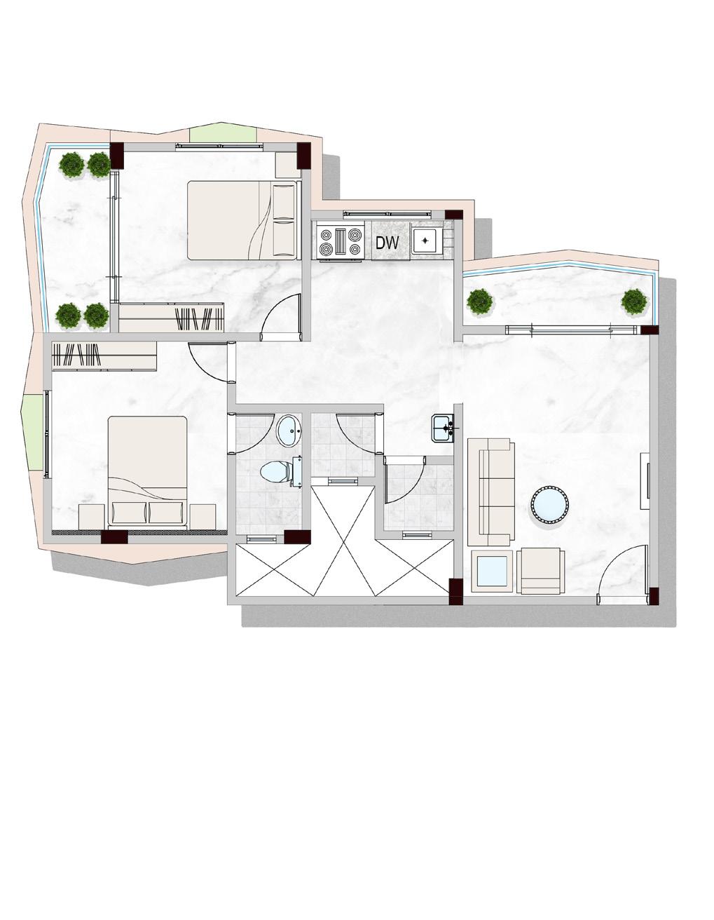 The Main Chunk of open space is been placed near the exterior side of site to allow the residents to have an interaction with adjacent premises and surrounding outside localities.