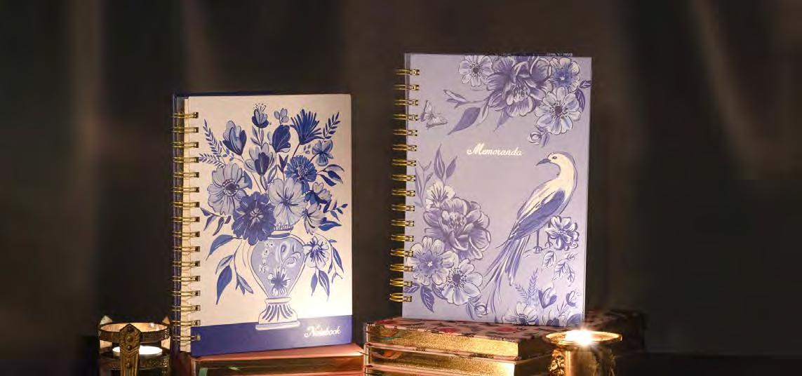 Notebook duos are 6” x 8.5”, with 32 blank pages, all printed with gold foil.