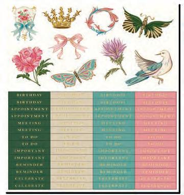 The following planners include monthly and weekly spreads, a 4-year calendar overview, and several informational and contact pages. They have a gold foil cover details, a foil-stamped sticker sheet, an interior pocket, and page markers.