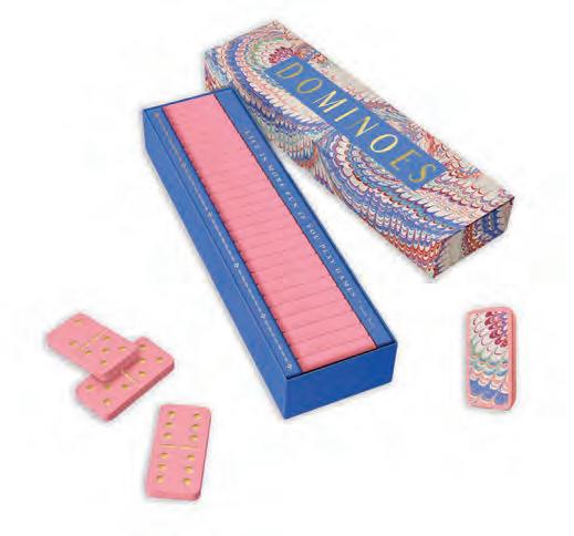 Includes a game booklet featuring instructions for Block & Draw + Maltese Cross Marbled Colors Domino Set