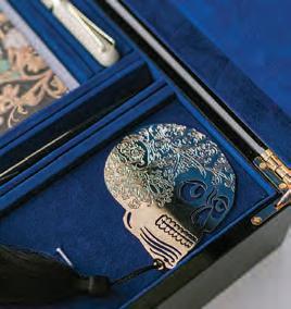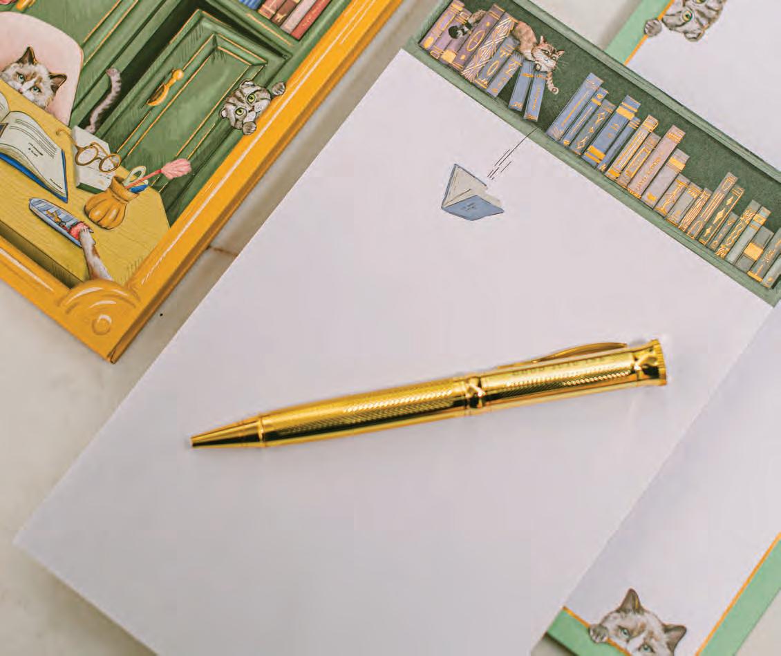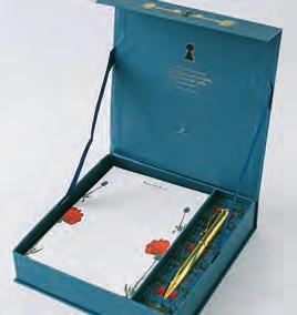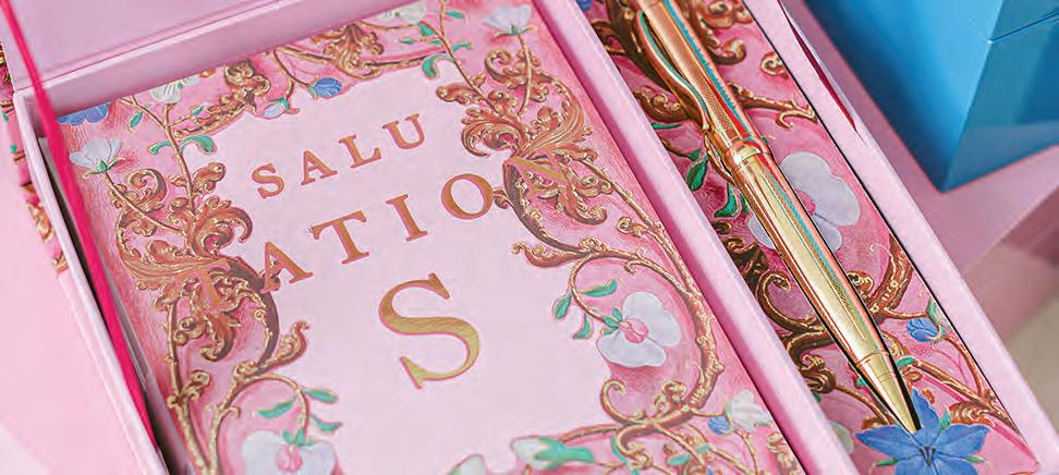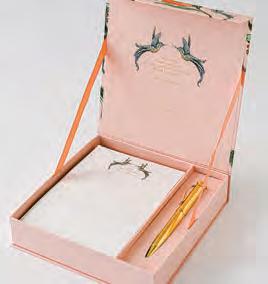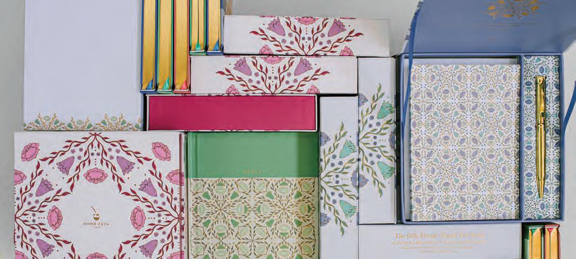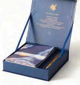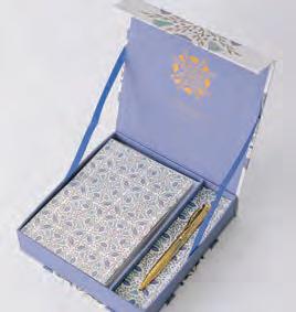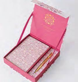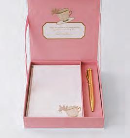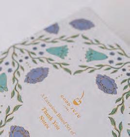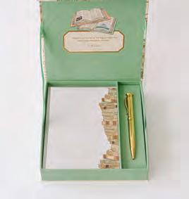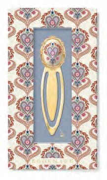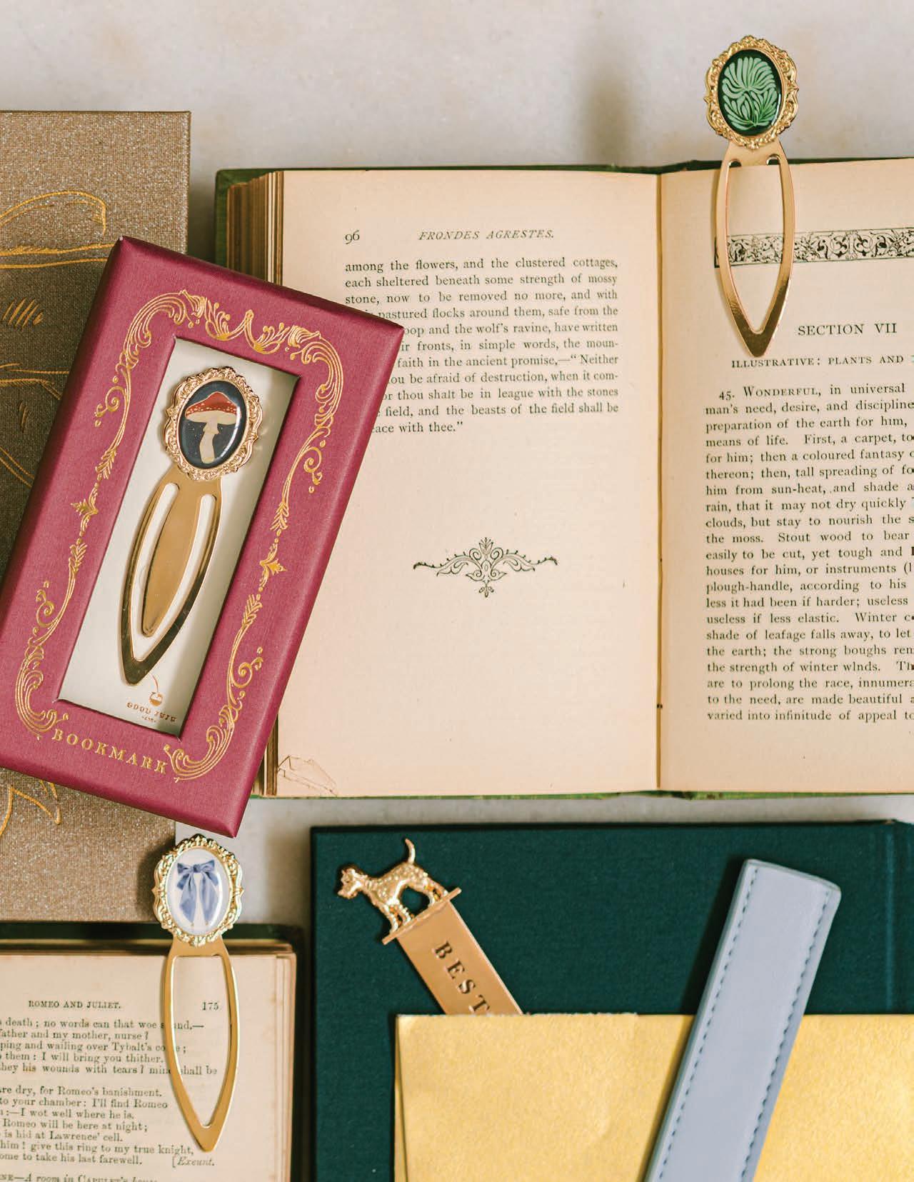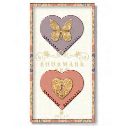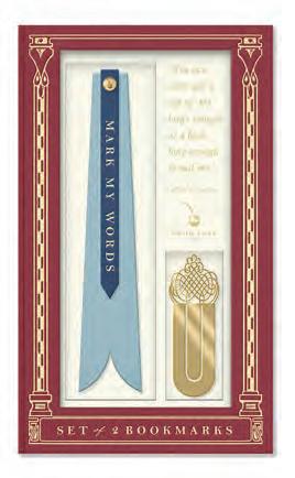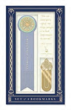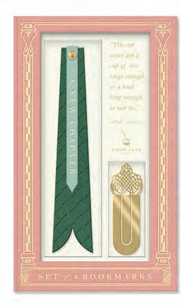 Each set comes with 1 metal etched bookmark etched with a thoughtful phrase. They double as a letter opener and can be tucked inside the custom vegan leather sleeve for safekeeping. All within a foil-stamped storybox wrapped in linen paper with