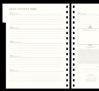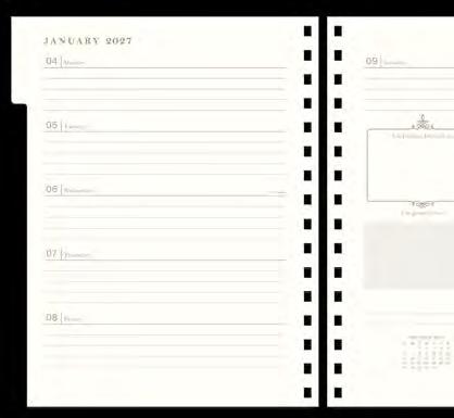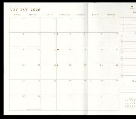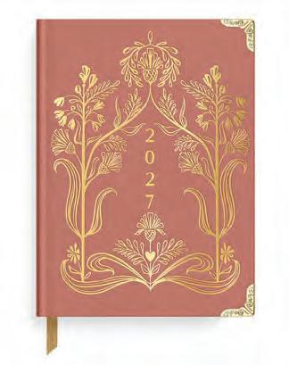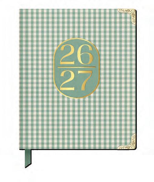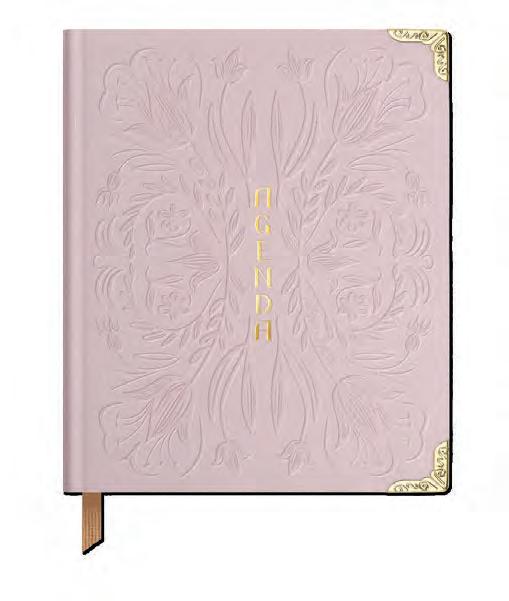 The following planners include monthly and weekly spreads, a 2-year calendar overview, a 1-year holiday overview, and several informational and contact pages. They have a foil-stamped cover, a foil-stamped sticker sheet, an interior pocket, and place markers.