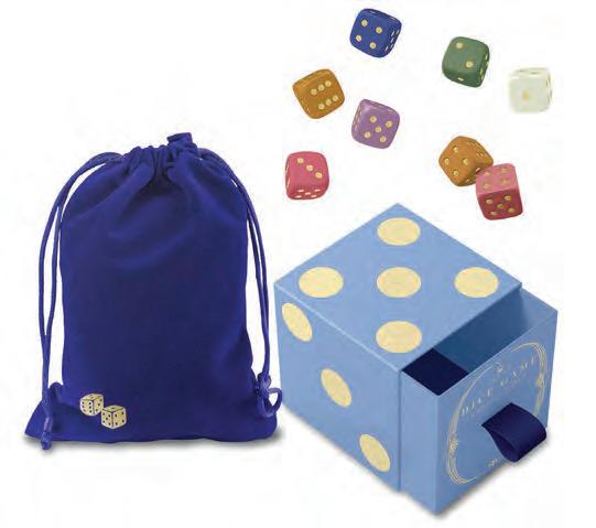 Velveteen lined, die-shaped box that doubles as a dice cup
