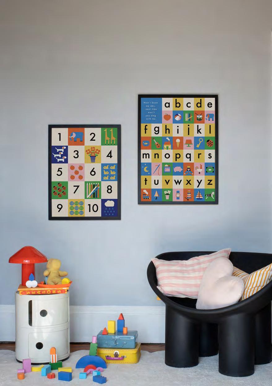 Inspired by illustrations found in a series of Spanish children’s books from the 1930’s, these fine art prints are designed to have a retro feel, with an unexpected contemporary point of view. Perfect for engaging young minds and teaching first numbers and the alphabet.