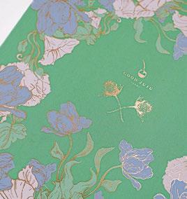 Being pregnant with my second child for the majority of 2023 has made for an extremely interesting, vision-expanding (alongside bellyexpanding!), all-hands-on-deck creative journey. What you will find in this catalog reflects exactly that — unbridled possibility. Our newest products include a stunning array of luxe vegan leather and die-cut metal bookmarks, as well as a chic-andtimeless sixty-piece dice game, 12 new journals, 45 (!) new cards, and 12 new planners. We also saw the culmination of a nearly two-year development project with the world-renowned Getty Museum: our Illuminated Stationery Collection. This gobsmackingly beautiful ode to Europe’s medieval manuscripts is entirely unprecedented in both the commercial stationery and fine art worlds. And yes — I do feel like I physically birthed these bad boys from my being. Not a single detail is spared, not a corner cut. We at Team Good Juju Ink are so proud to present this latest round of truly radiant design.