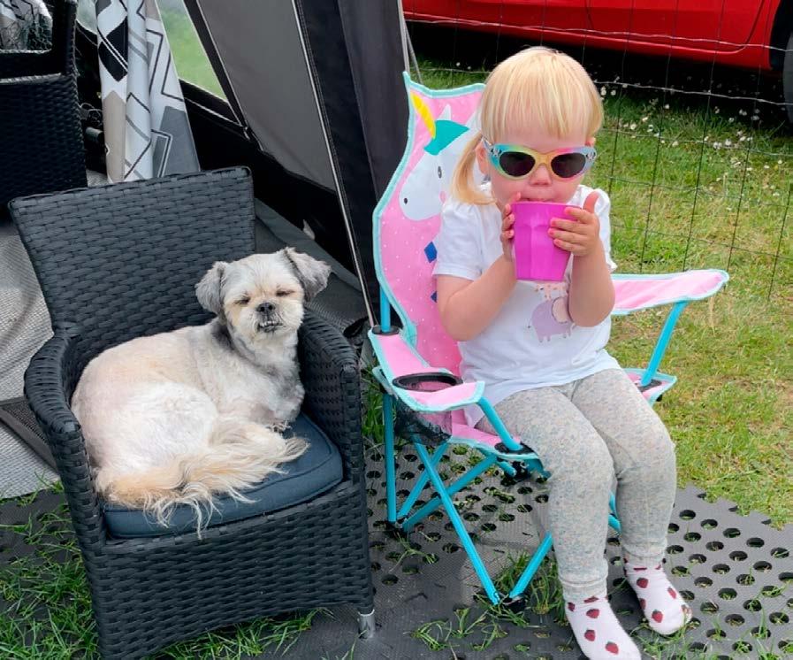 Niven Christiansen med hunden Bobby i baggrunden. Kåre og hans kone, Gitte, var med på campingweekend for tredje gang.