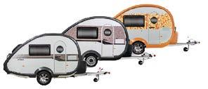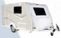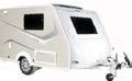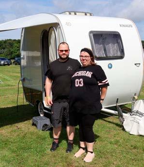 Rikke og Tim Rasmussen foran deres lille Knaus Schwalbennest fra 2011. Schwalbennest betyder svalereden og henviser både til vognens facon og svalerne i Knaus' logo.