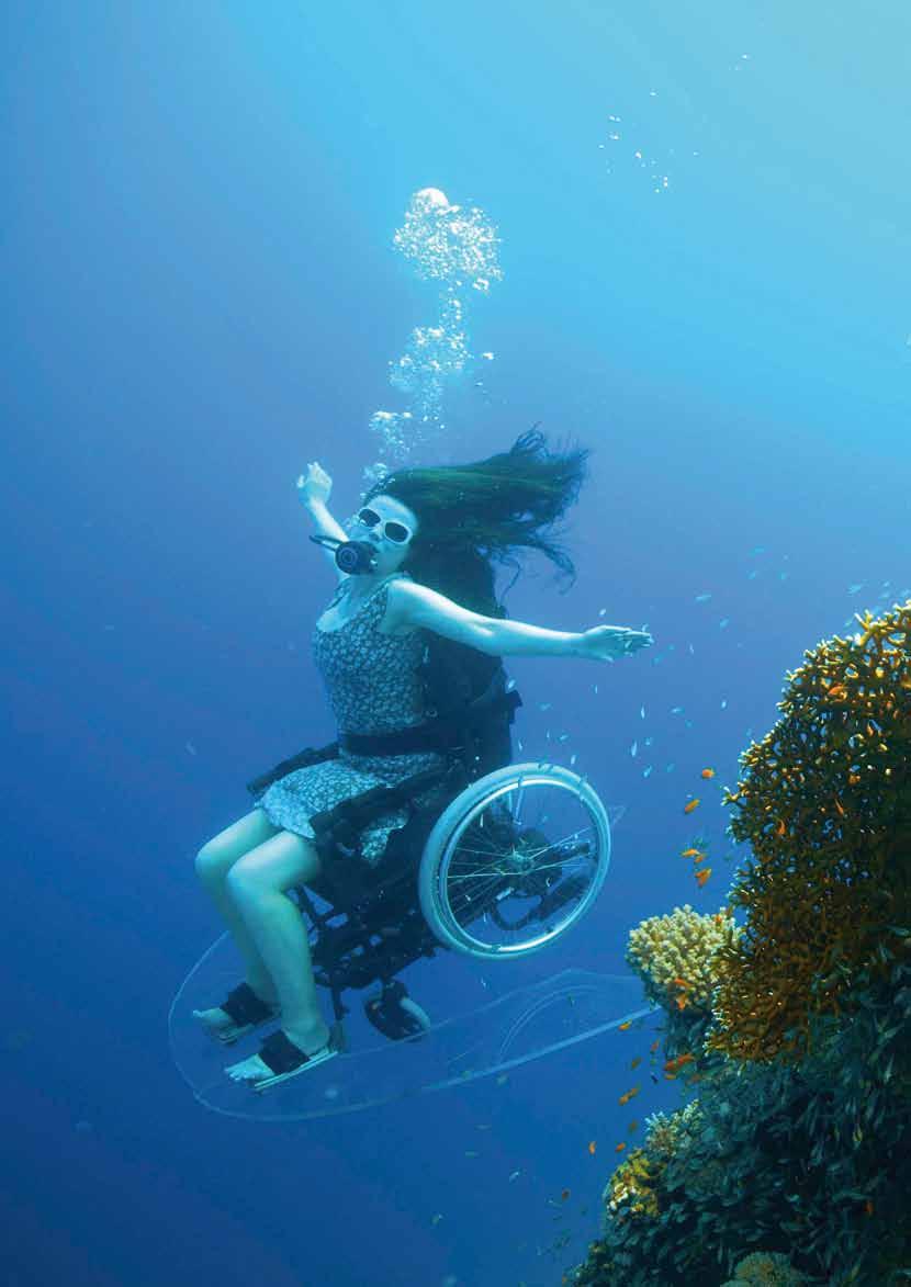 I dette nummer finder du også et spændende interview med den engelske kvinde Sue Austin, der har udviklet en kørestol med finner til dykning. Nogle udfordrer havet, andre udfordrer landjorden. Det gjorde Niels Brinck, da han begav sig ud på en over 800 km lang march i kørestol.