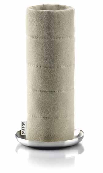 Har du svært ved at vride en karklud? Eva Solo har lanceret en karklud i mikrofiber med stativ. Kernen er af absorberende skum der gør, at karkluden folder sig ud efter brug og derfor tørrer hurtigt og effektivt. Den er dog ikke kun et funktionelt og hygiejnisk redskab. Den kan også stå af sig selv – og bringer dermed også et æstetisk twist til dit køkken. Den medfølgende holder er fremstillet af matpoleret, rustfrit stål. Når karkluden placeres på holderen, beskyttes bordet samtidig mod fugt. Karkluden fås i farverne sort, grå og sand og vejledende pris er 199,75 kr. for et sæt bestående af to karklude og en holder. Ekstra karklude kan købes. Tåler vask ved 60°